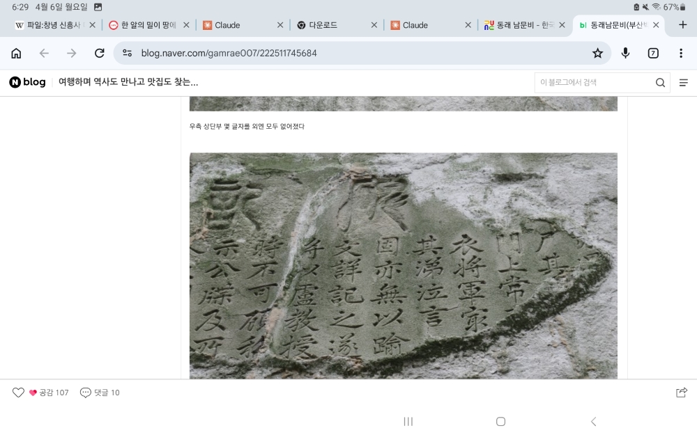 이 모든 과정이 탁본으로 남겨져 당시의 호국 정신을 증언하고 있다. 특히 마지막 사진의 '전사역이 가도난' 부분은 동래성 전투의 상징과도 같은 대목입니다.