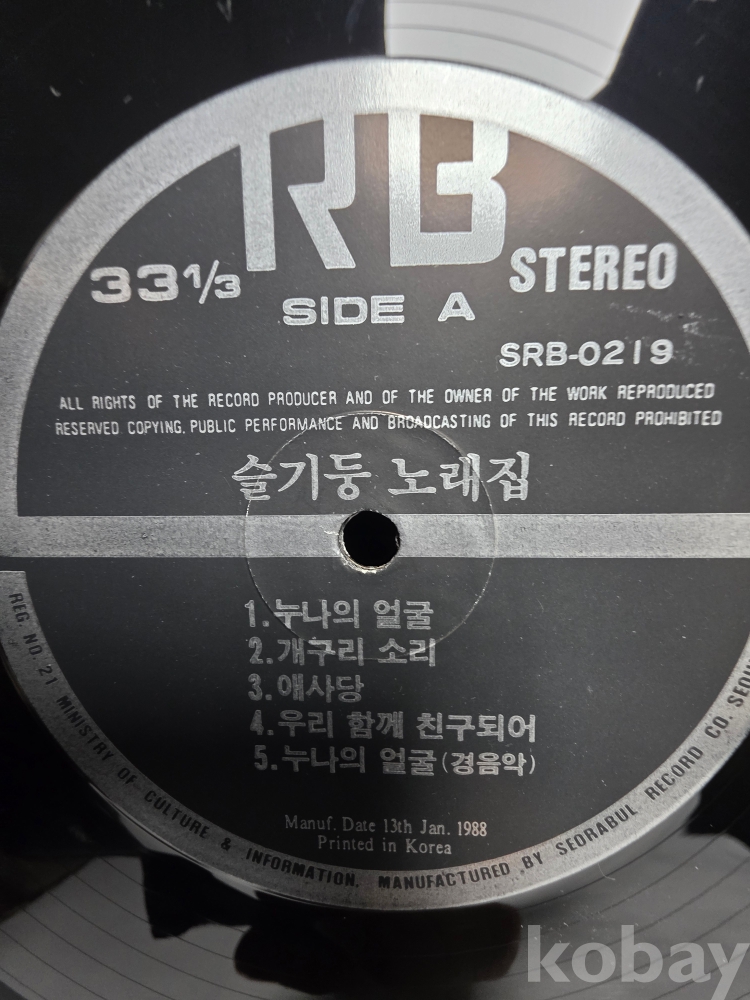 EX : 약간의 마모, 모서리 찢김 존재 음반상태