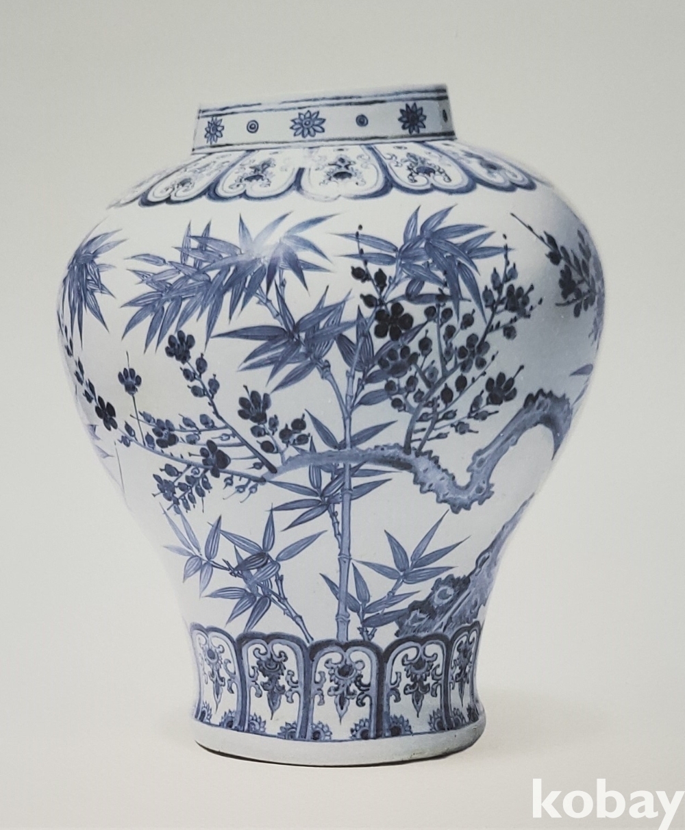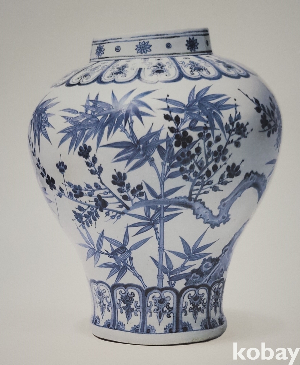 조선시대 청화백자 매죽문 호 압인 판화입니다