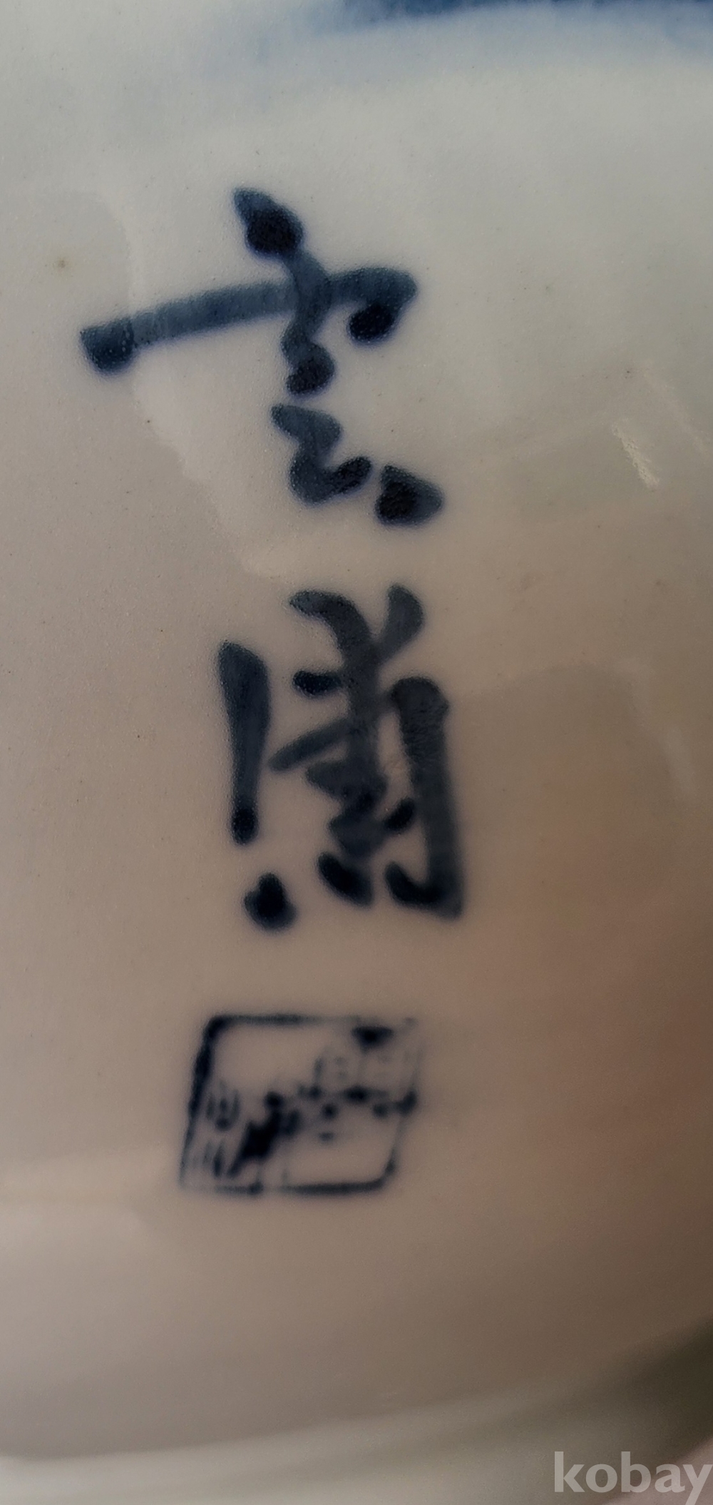 낙관은 수결되어 있지 않고 그림의 옆면과 도자기의 아래에 운보(雲甫) 수결이 있습니다
