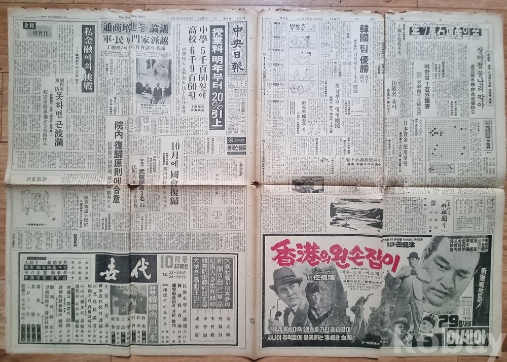 go-9 / "1965년 10월, 격동의 서울: 중앙일보 호외 및 정기 간행본 기록" (광고, 만화, 유명 영화 관고, 이슈 등)