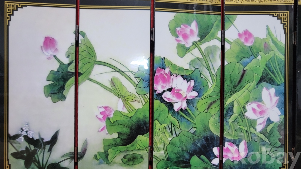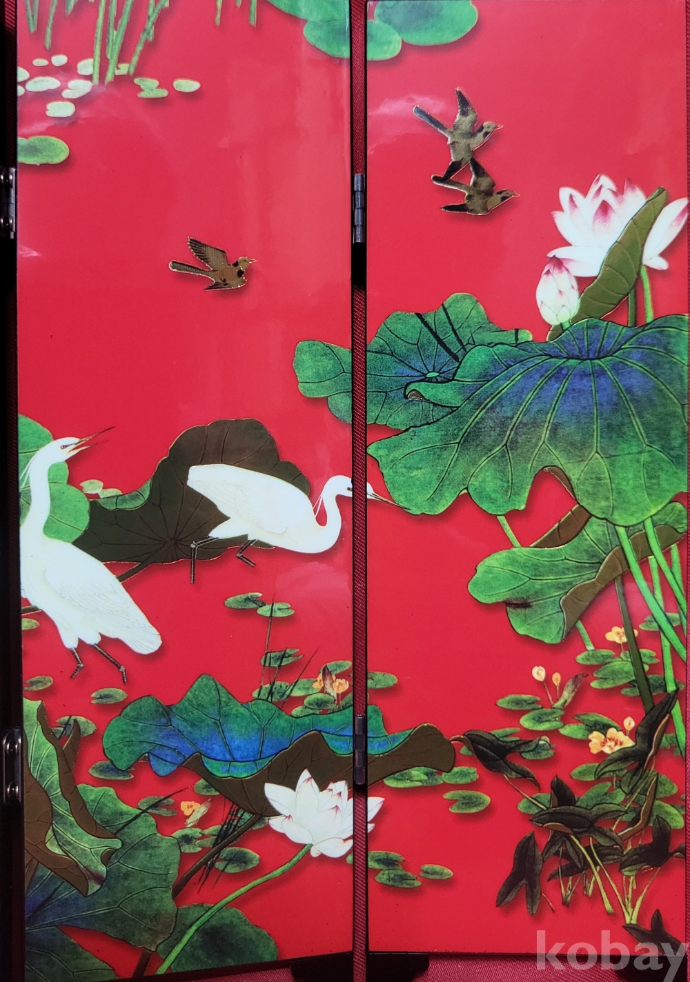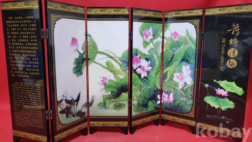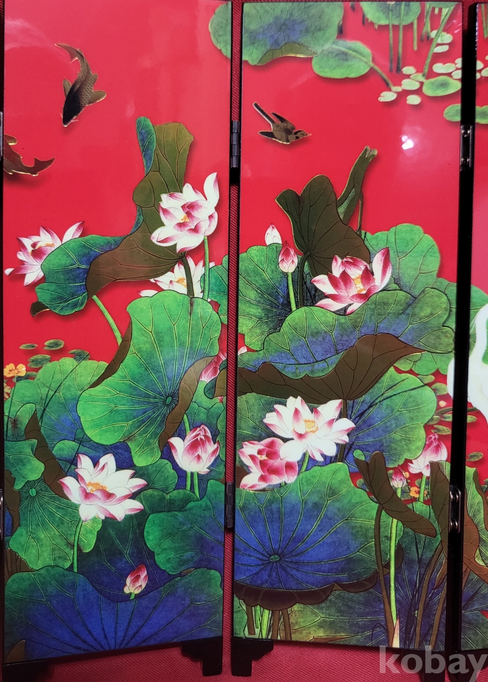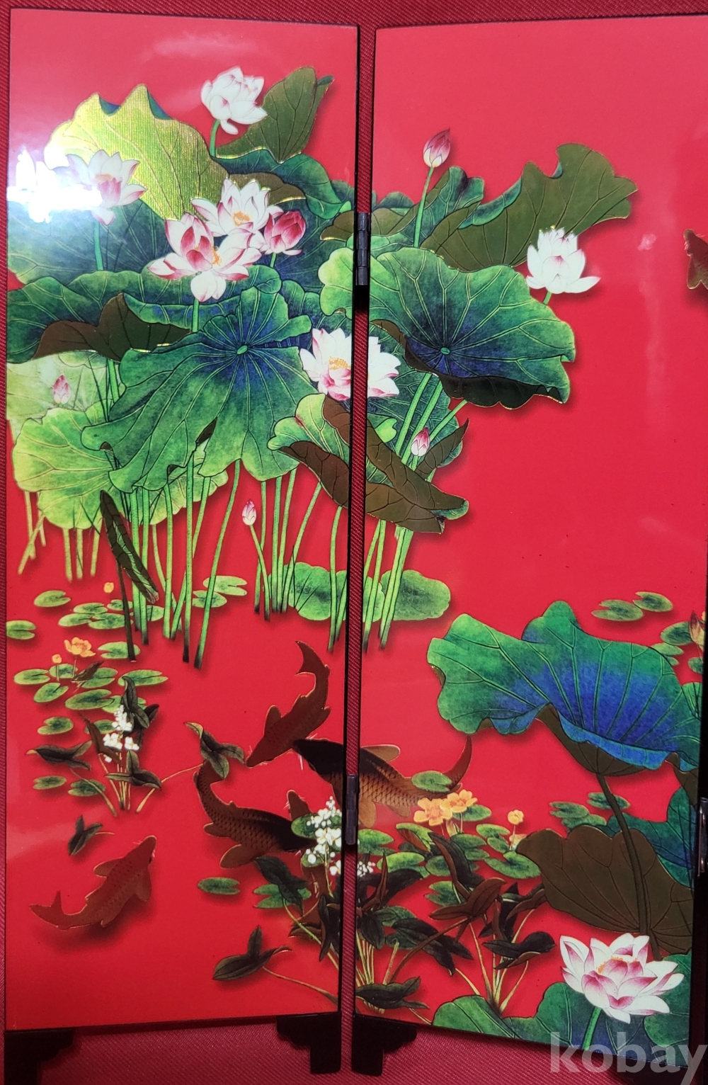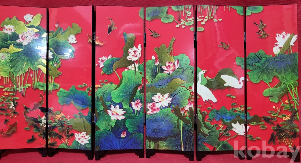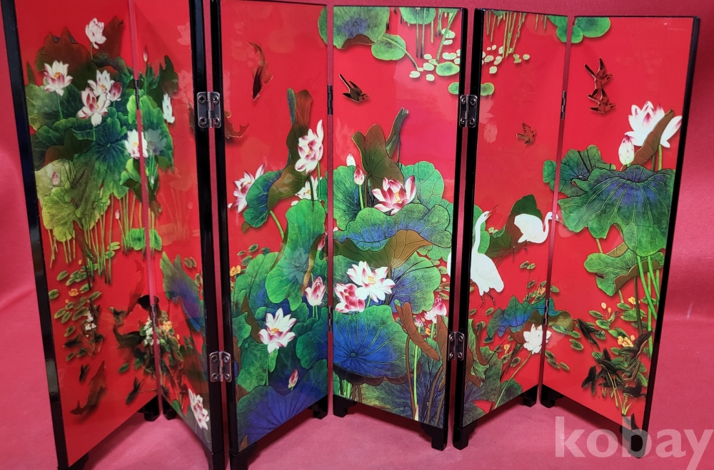방고소병풍(仿古小屛風)6곡(谷) 연꽃(蓮花)문양 장식용 미사용 소병풍입니다,