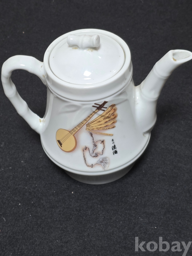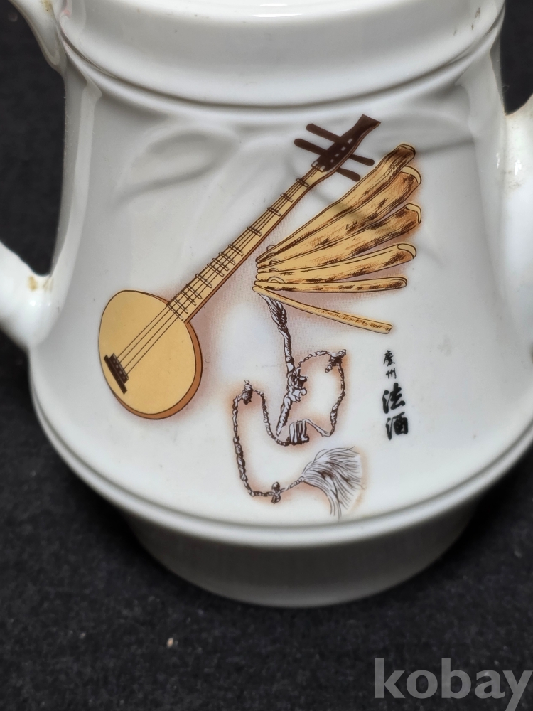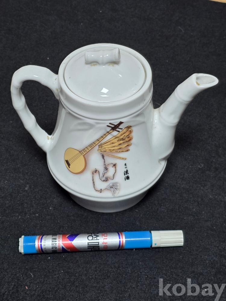 (((근현대사자료/술자료))) 오래전 우리고유의 악기그림이있는 경주법주 도자기 주전자