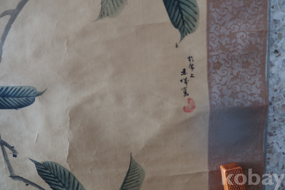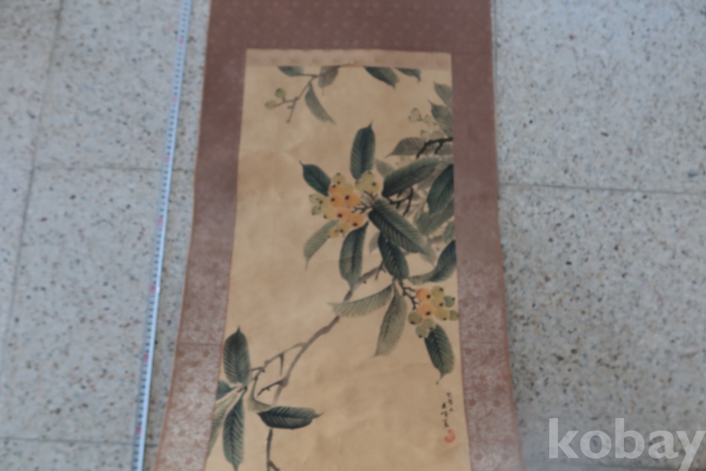 멋진 그림을 가진 비파?나무 임니다 화가의 혼을 가진 명화 이며 두 축은 깨진 부분 마개 분실이 보임니다 족자는 세월의 흔적이 보임니다 1930 전후의 명화 임니다