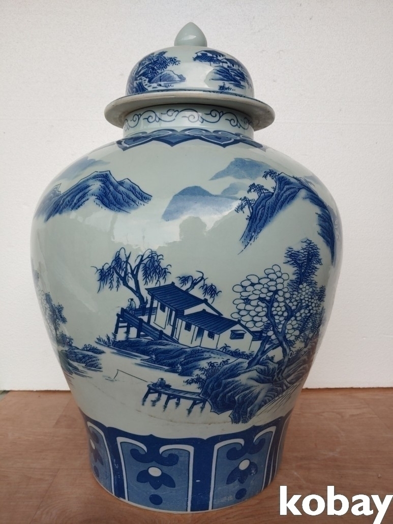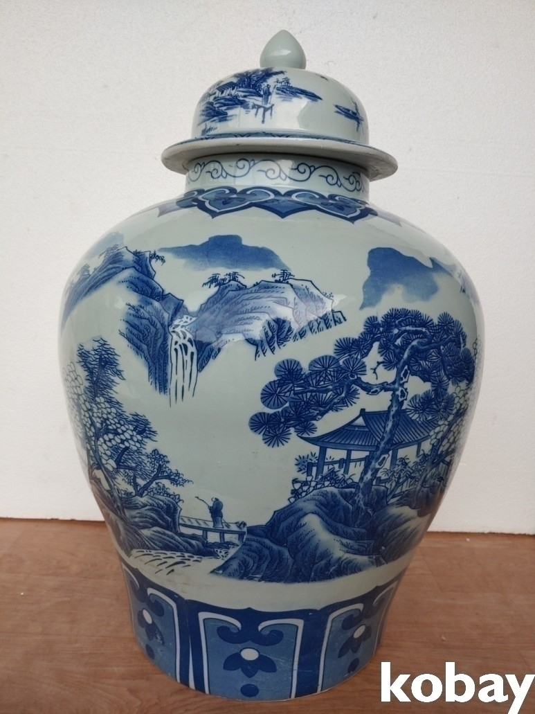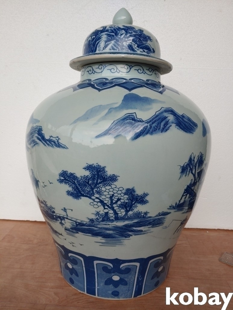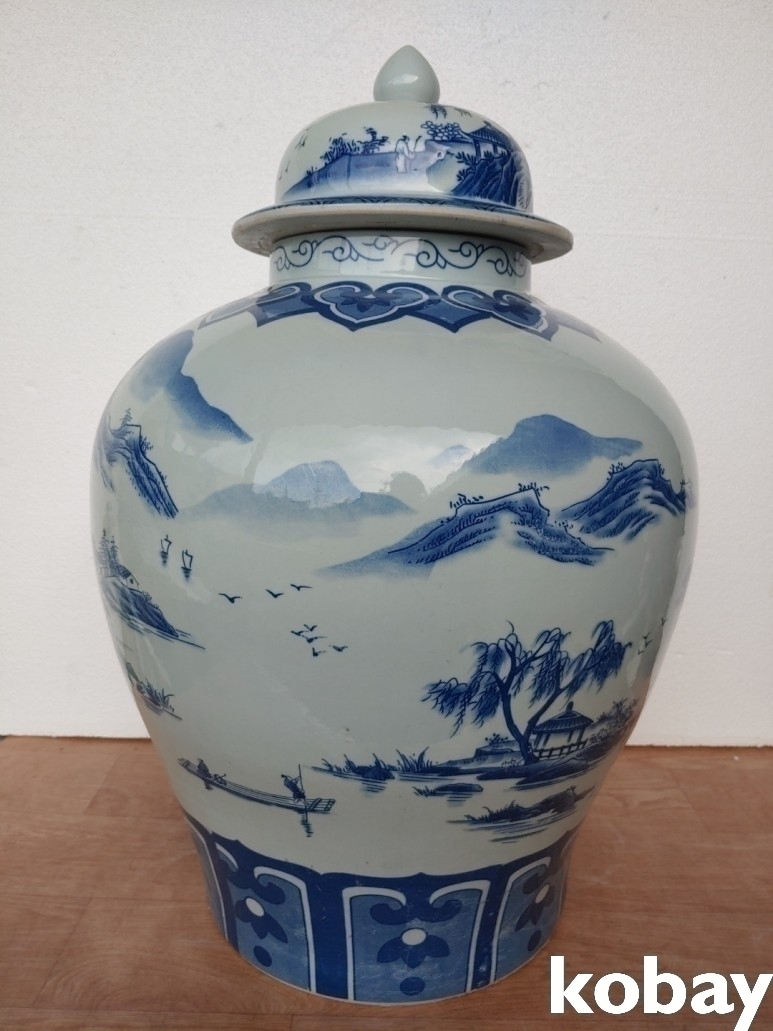 산수 풍경 대형 도자기 입니다.