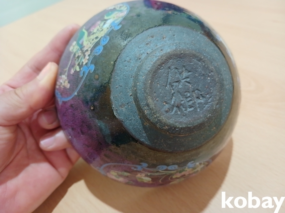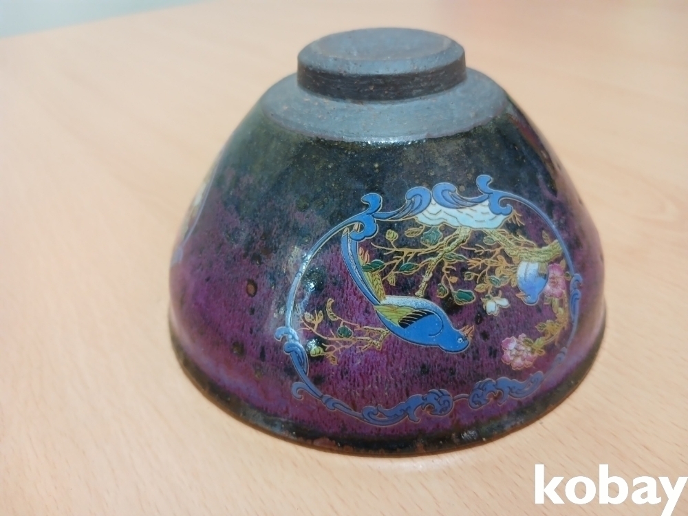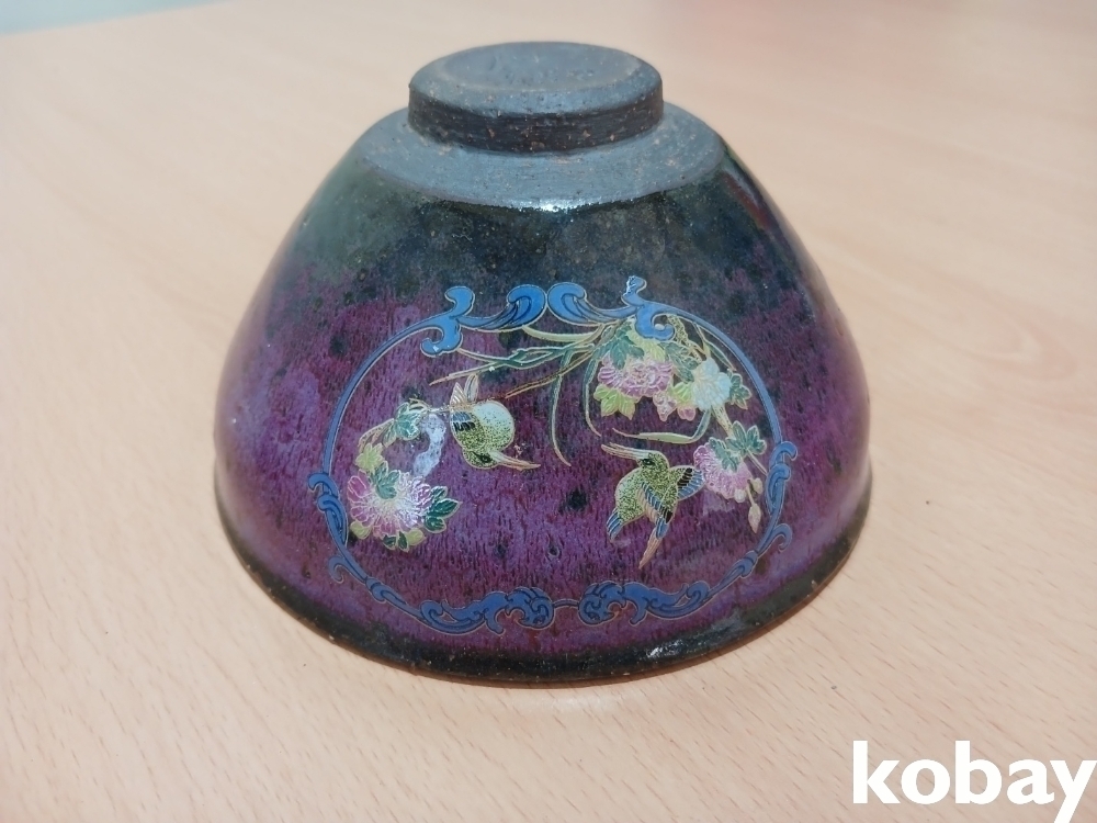 꽃 문양이 있는 다완 도자기 입니다.