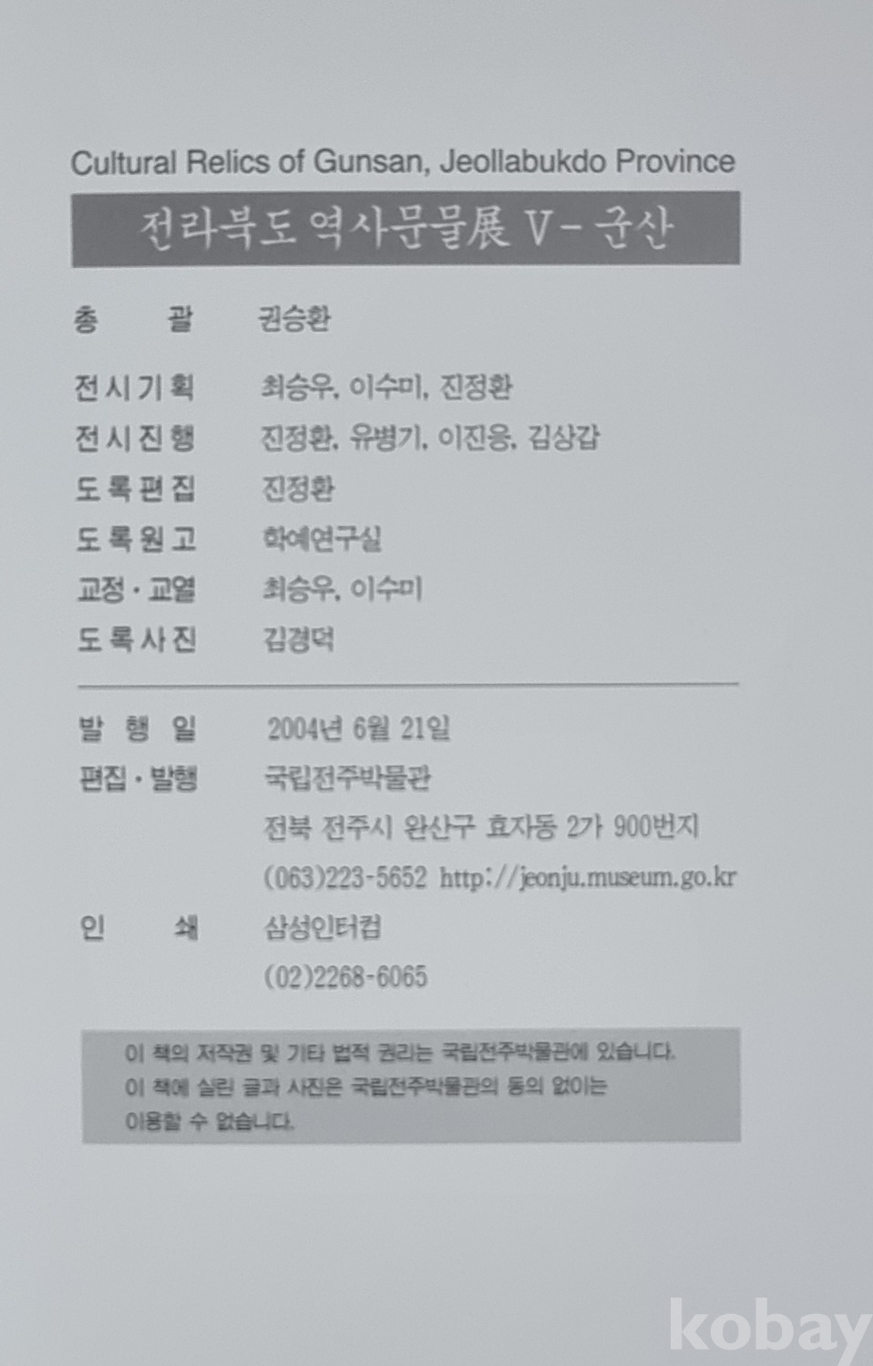 [3] <<전라북도 역사문물전 군산>> / 국립전주박물관 편, 2004년 6월 21일 발행 초판