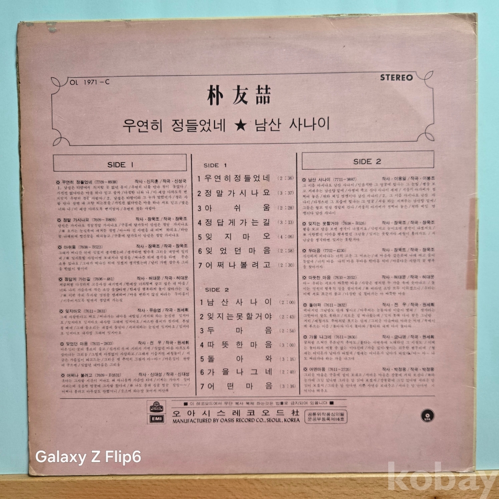 중고 LP인 관계로 취소나 반품도 불가합니다.
