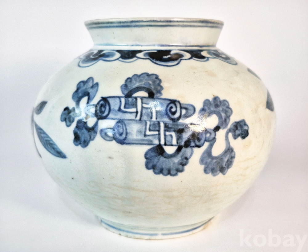 조선백자청화쌍칠보불수문호(朝鮮白磁靑華雙七寶佛手紋壺)입니다.
