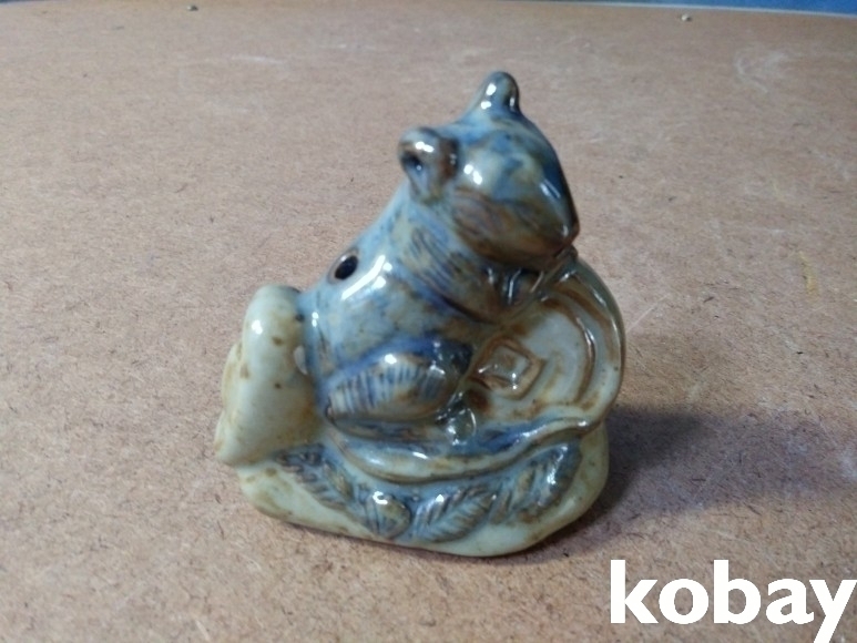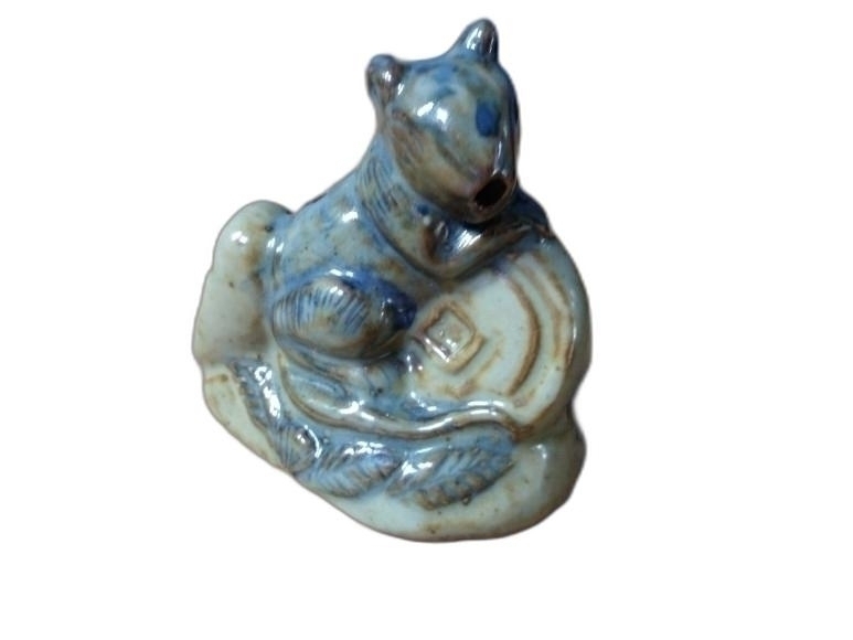 쥐와 옆전이 있는 연적 도자기 입니다.