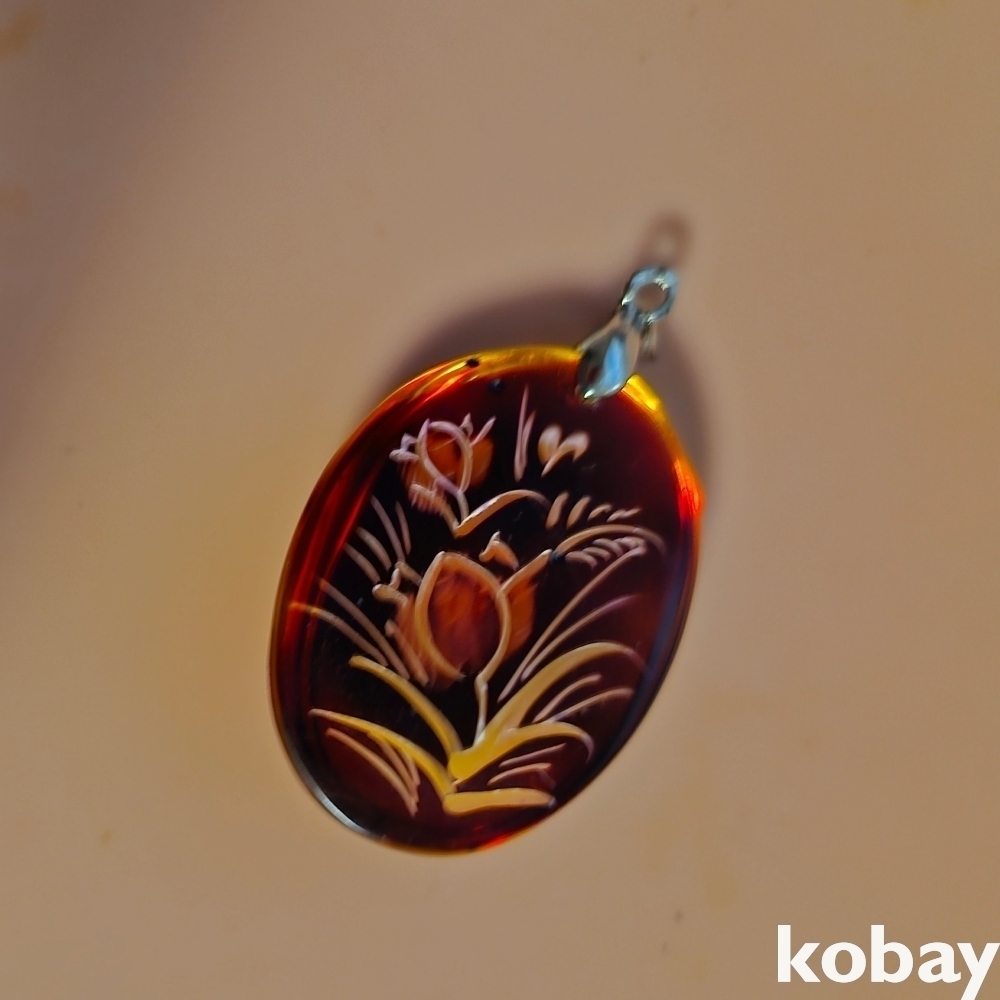 안쪽으로 조각하는 인타리오 기법의 인조호박 펜던트입니다.