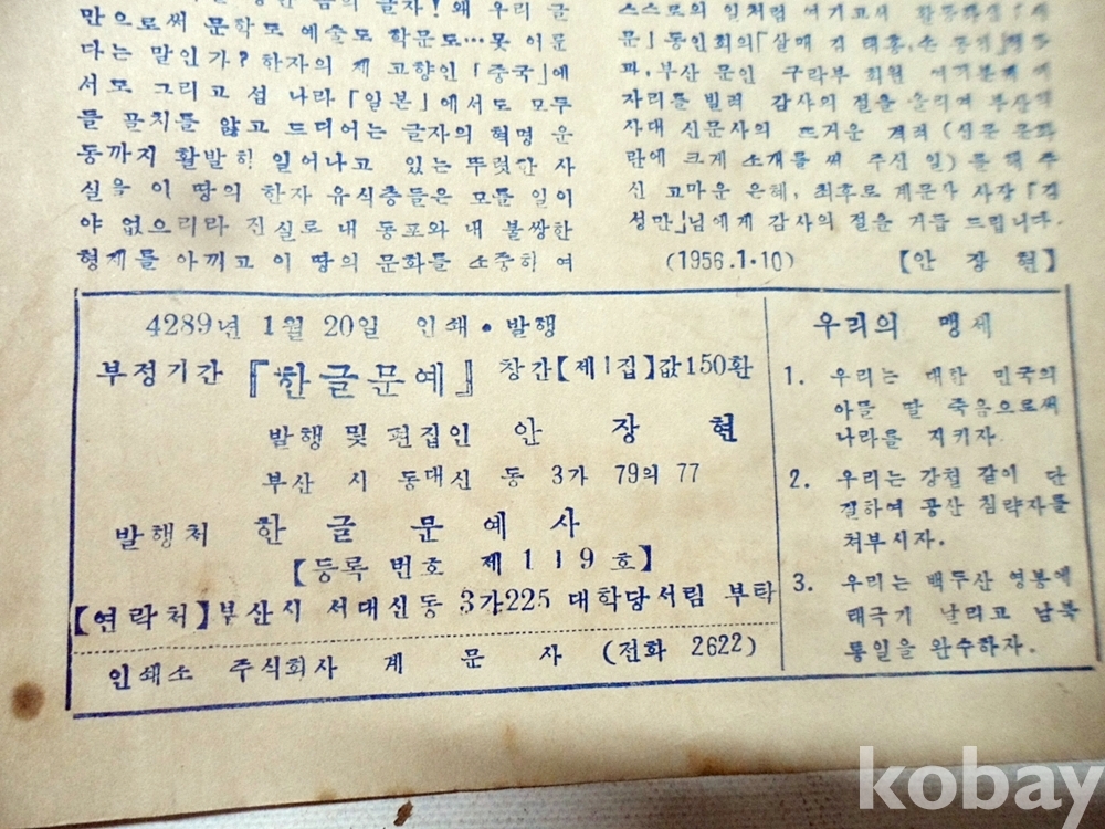 1956년 한글문예 창간호 한글문예사
