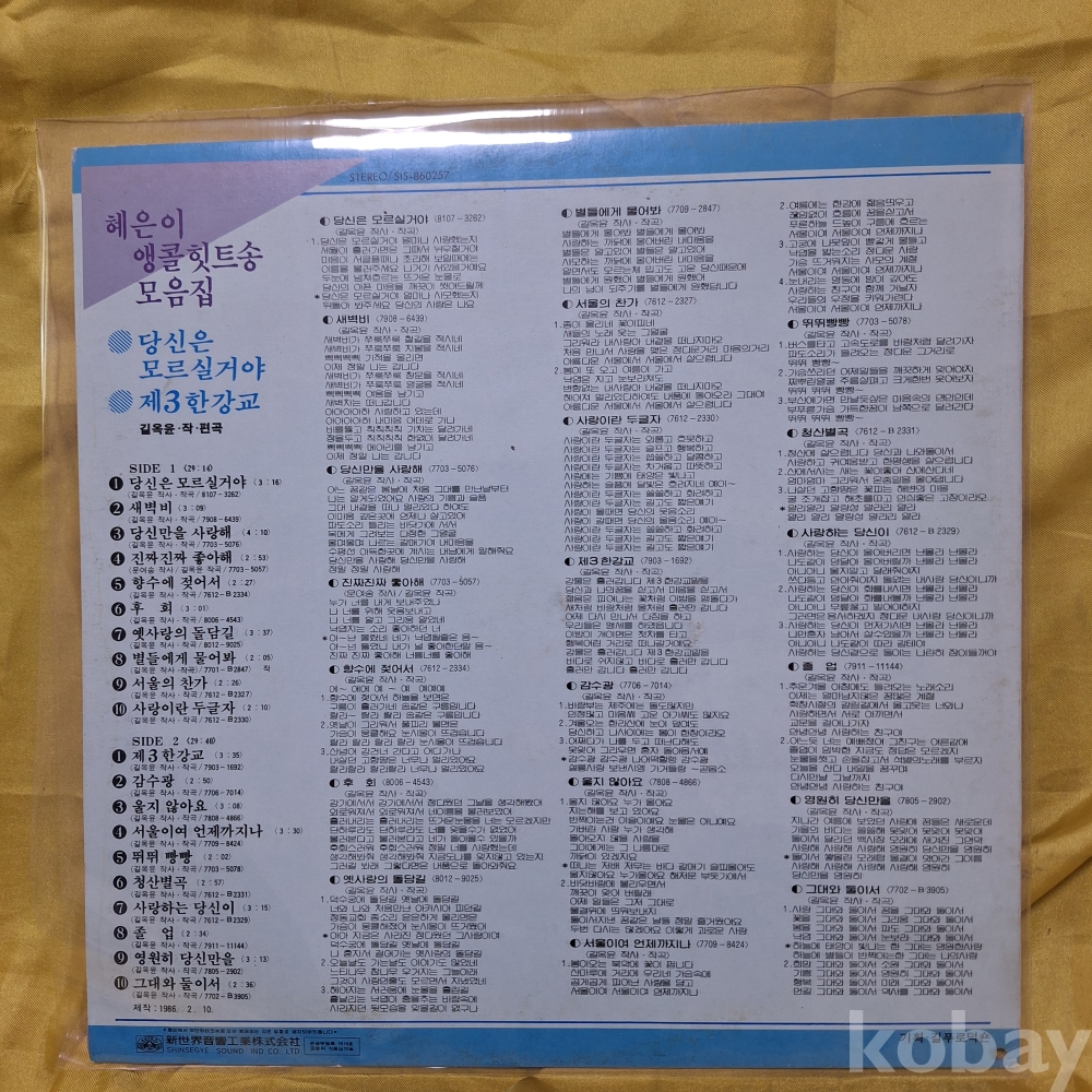 **중고 음반이라 최대한 잘살펴 올리나 혹 작은 팀과, 사진상 엷은 스크릿치는 잘 안보일수 있서니