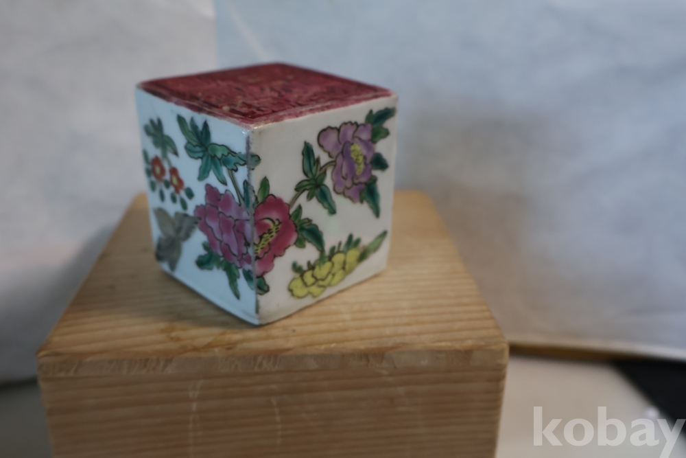묵직한 도자기 도장 임니다 위에는 호랑이 그림이 보이고 사면으로 화조도를 가진 귀한 도장 임니다 중국 도장 임니다 대청건륭?이 보이는 오래전 고미술 임니다 유일무이한 명품
