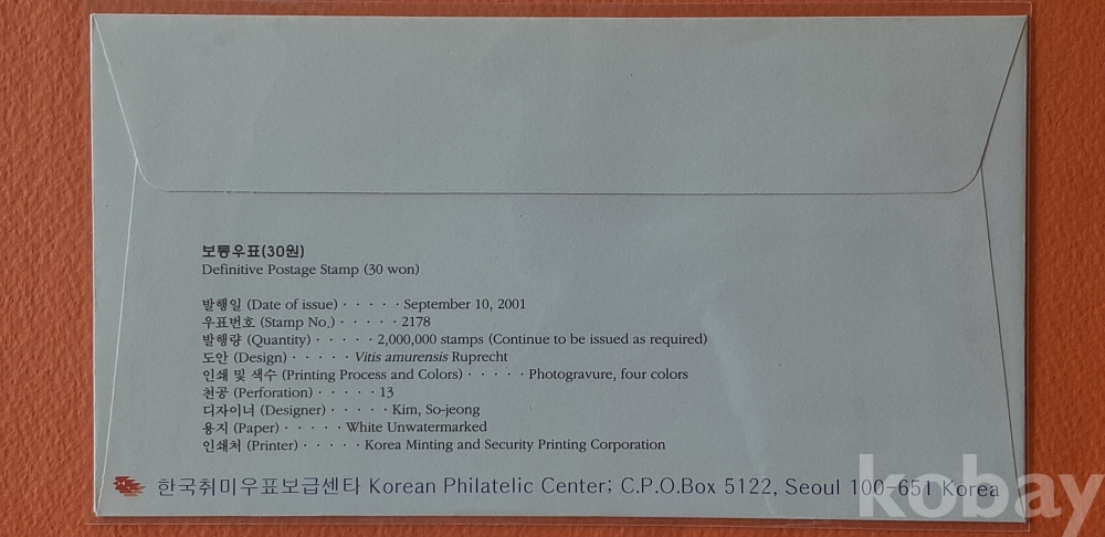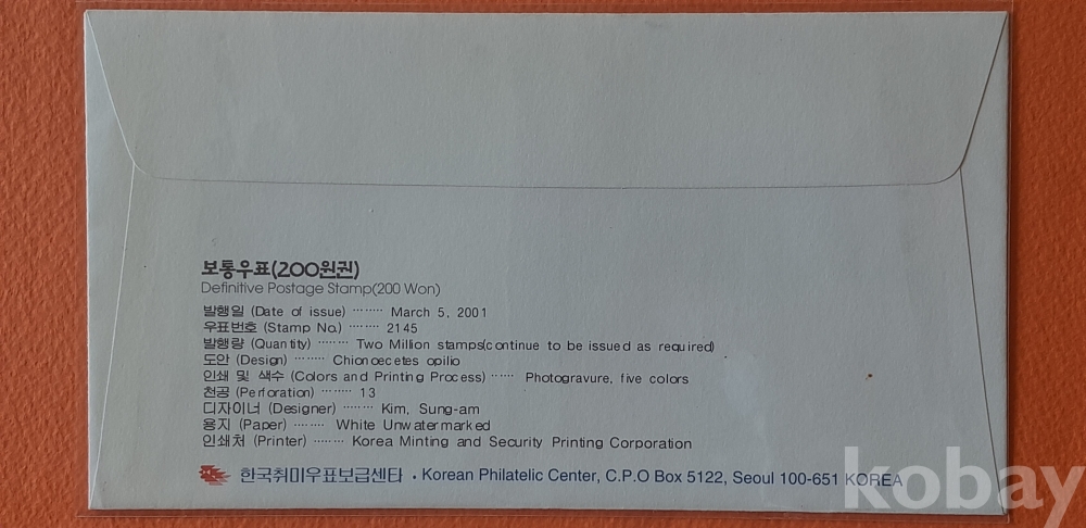 한국취미우표보급센터(현 우표 박물관) 제작 봉피, 까세 사용 초일봉피 입니다.