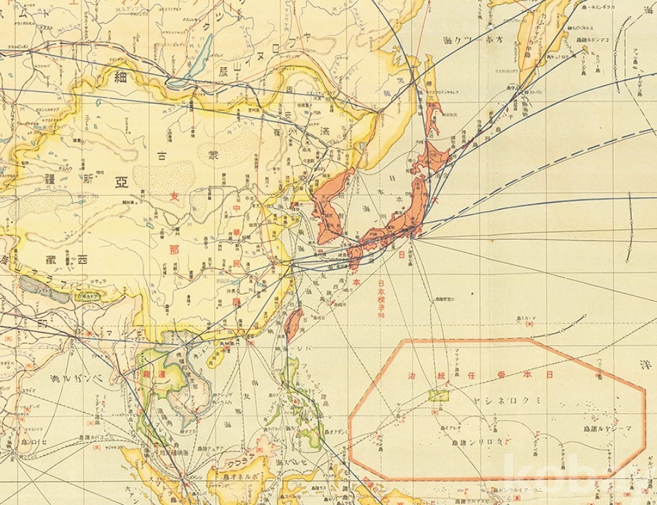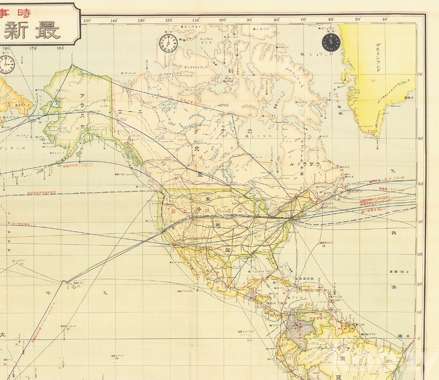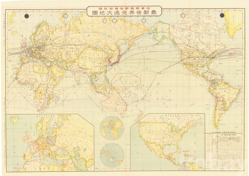 지역별 현지 시간을 도식해두고 주요 항공로와 교통로가 도식되어 잇으며,