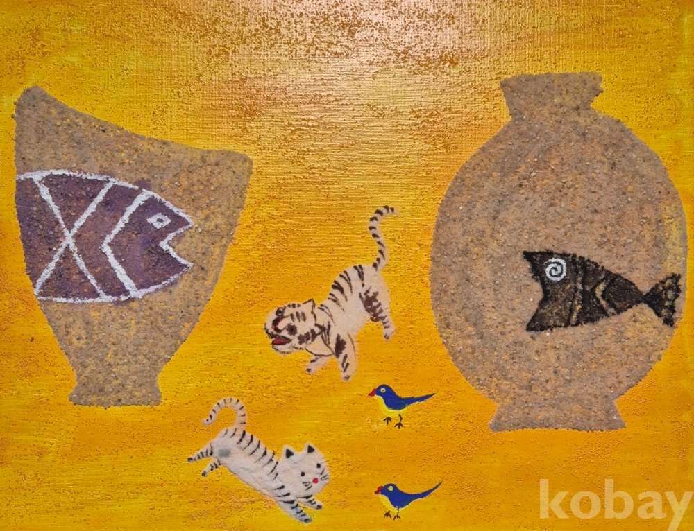 혼합재료를 사용하여 질감을 표현한 작품입니다.