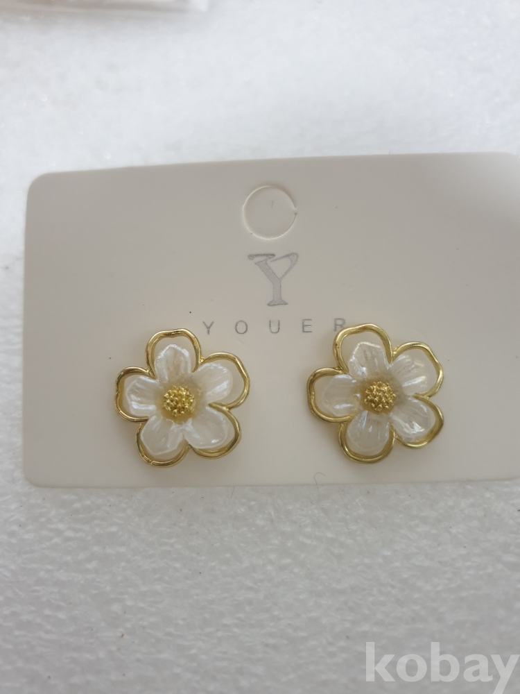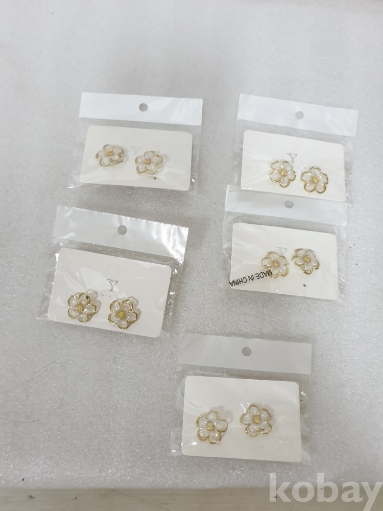 {천원경매} Y-4-2296 흰색 꽃 귀걸이 5쌍 (침 925)