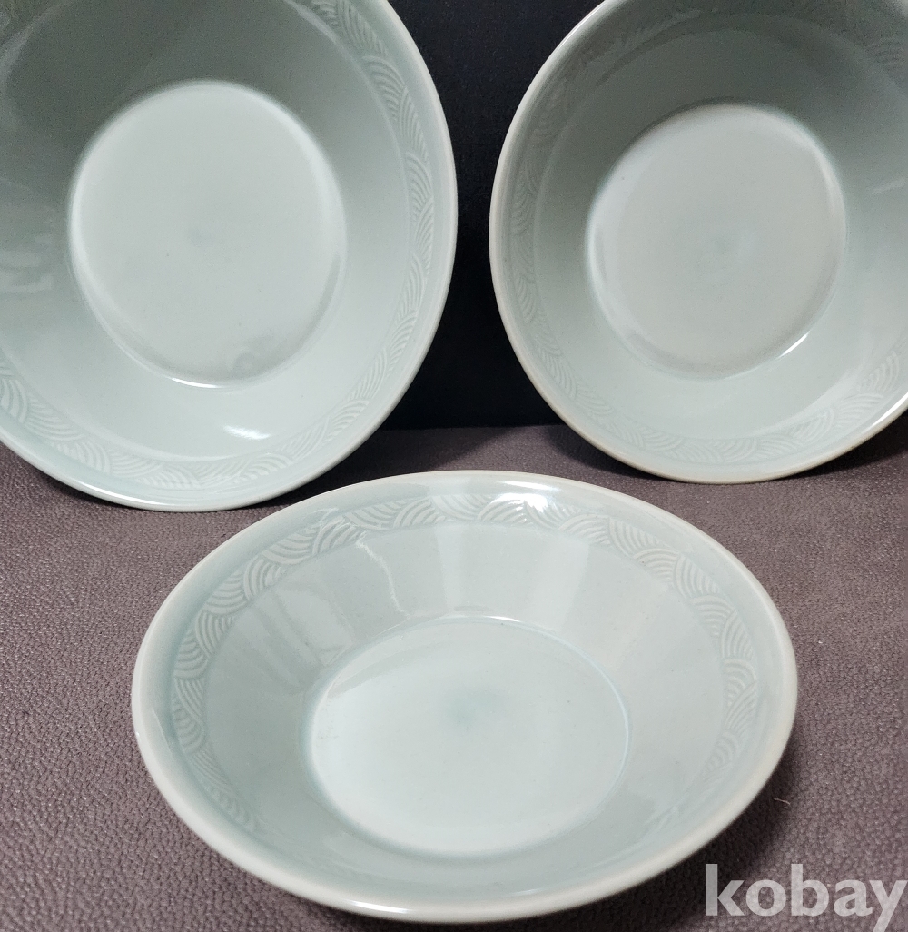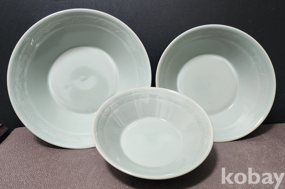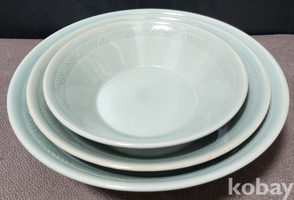 강진청자접시 康津靑瓷楪匙 3점 세트 < 미사용 박스완비 작품 >