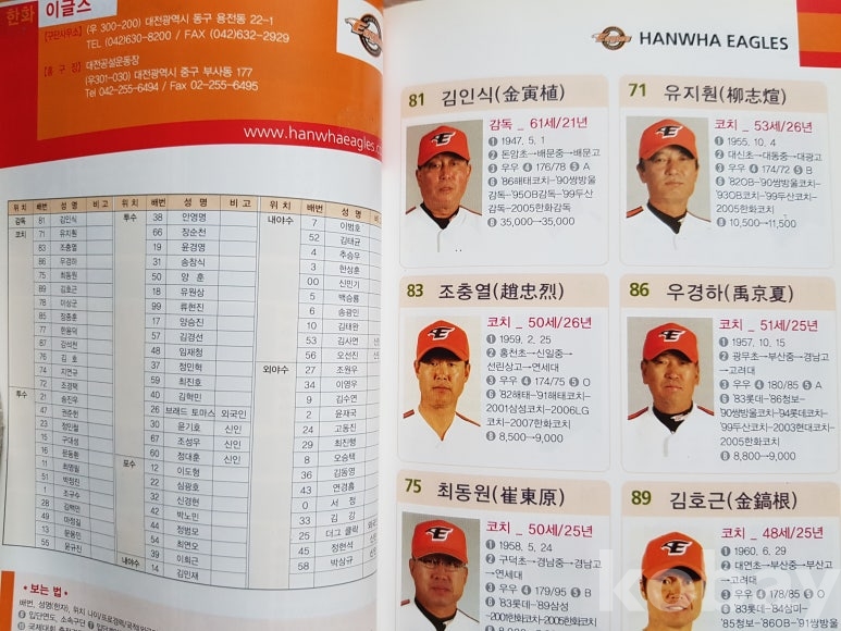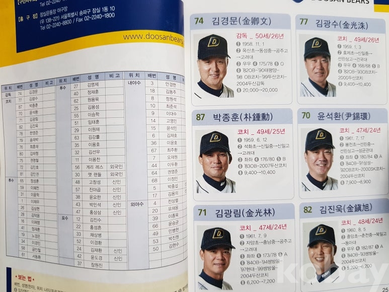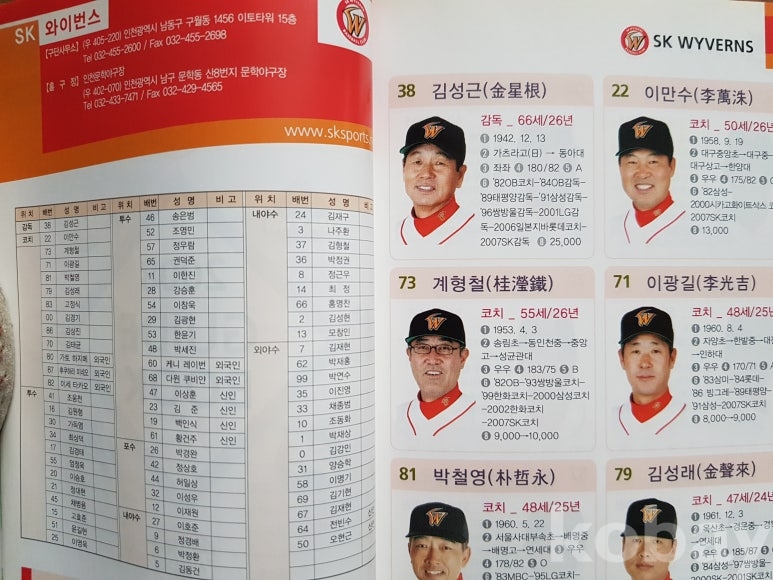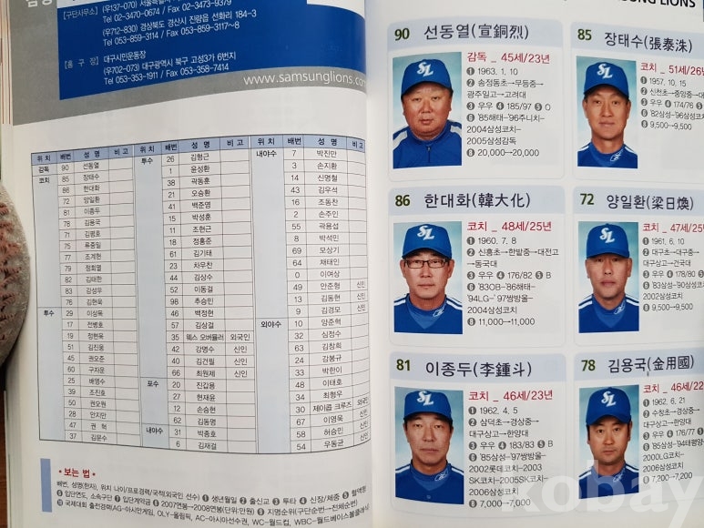 설명: 이 책의 오피셜 가이드북으로 속 내용에는 전 구단 선수 성명. 생년원일. 국적. 배번. 위치. 출신교. 투타. 신장/체중. 혈액형. 입단년도. 계약금. 년봉 등 등 기록 제공된 책입니다.