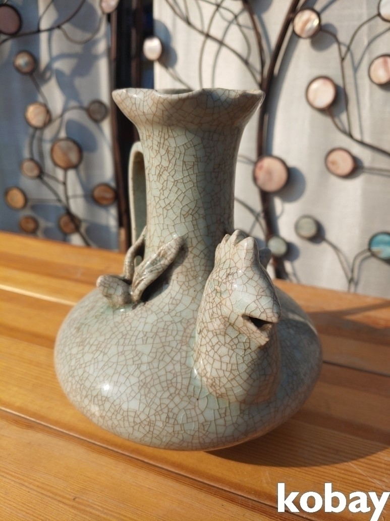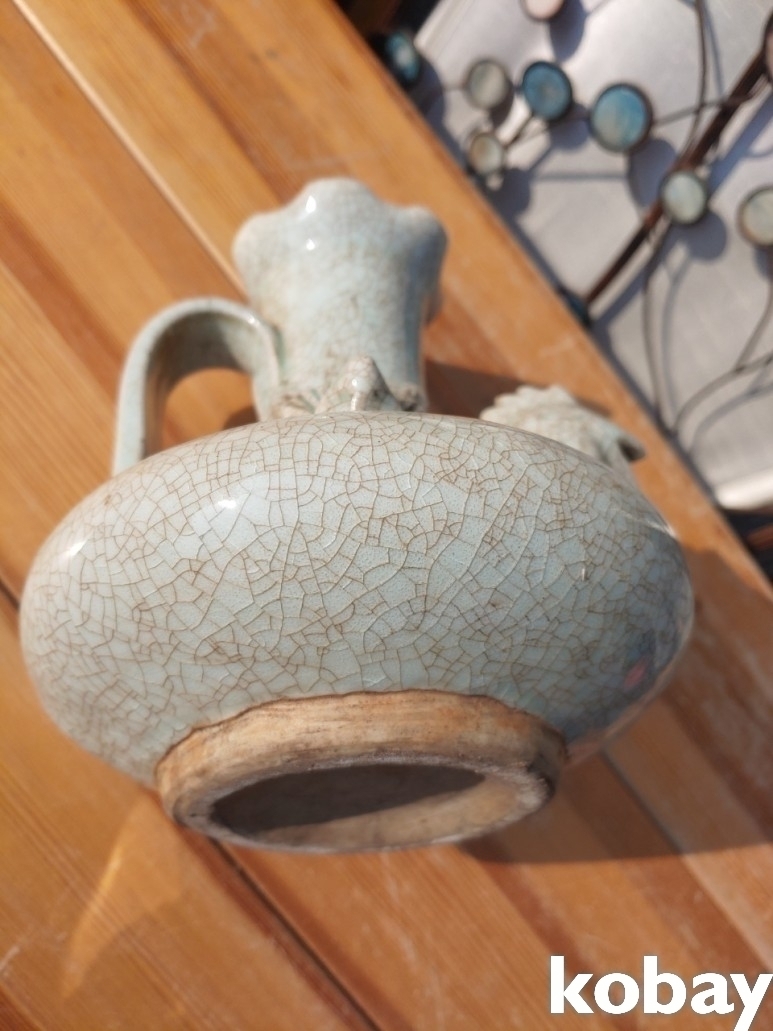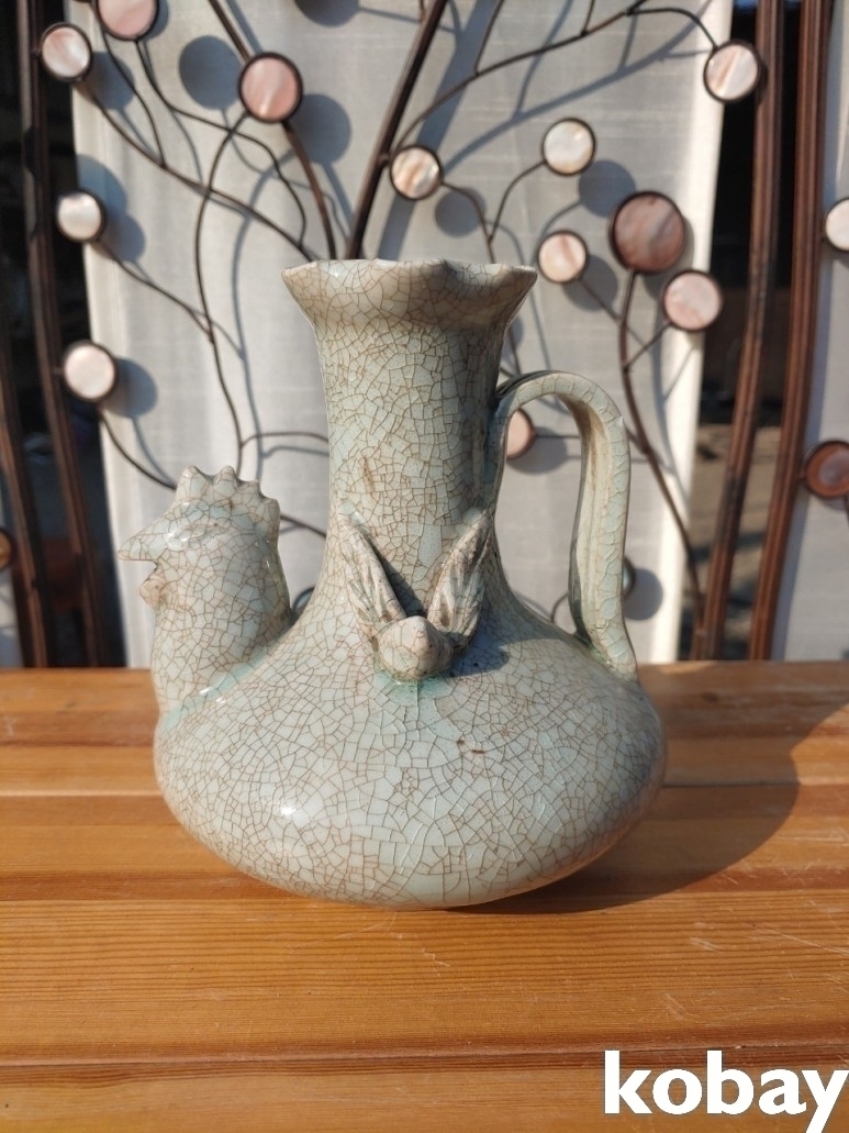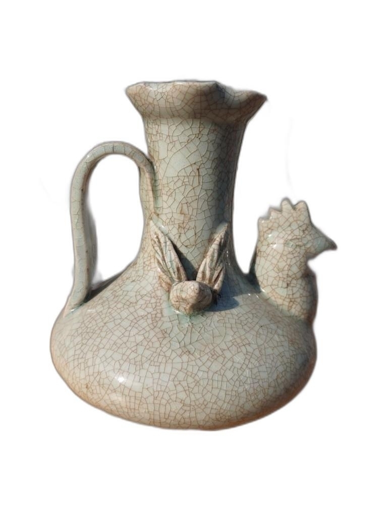 동물 머리 주구가 있는 도자기 주전자 입니다.