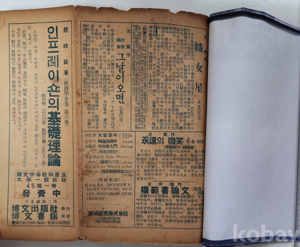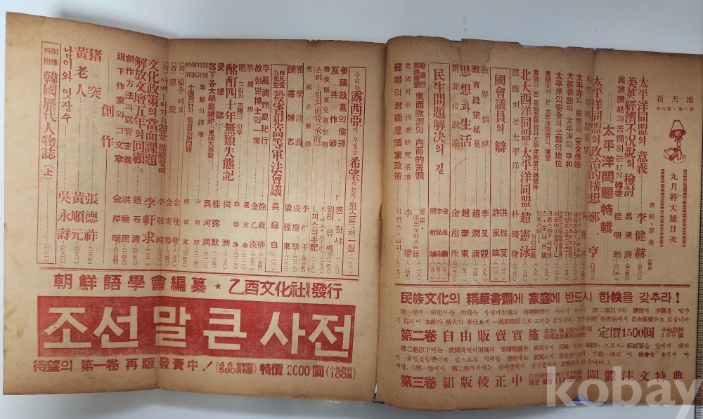 자료명/ 저자/ 발행/ 형태사항 | 『신천지 9월 특대호 · 新天地. 九月特大號: 제4권 제8호』/ 서울신문사출판국 編/ 서울: 서울신문社出版局, 1949.9.1/ 304p. 앞표지·297~304면 4장 복사, 뒤표지 수선. |