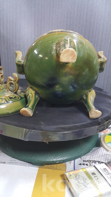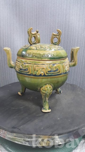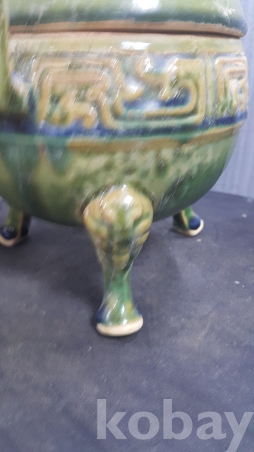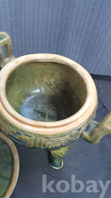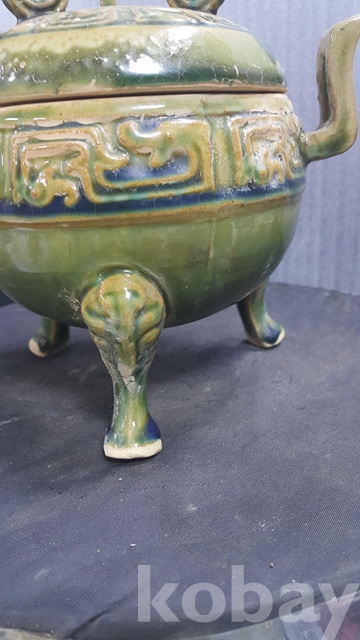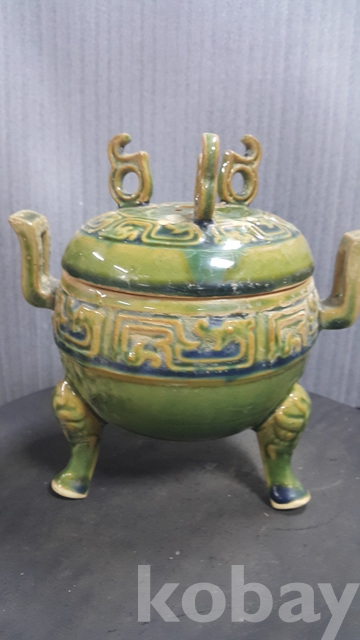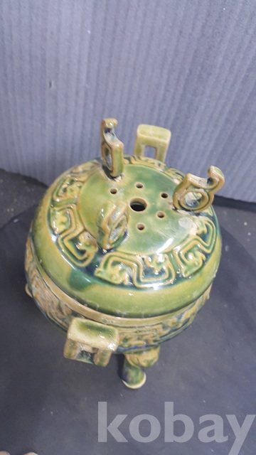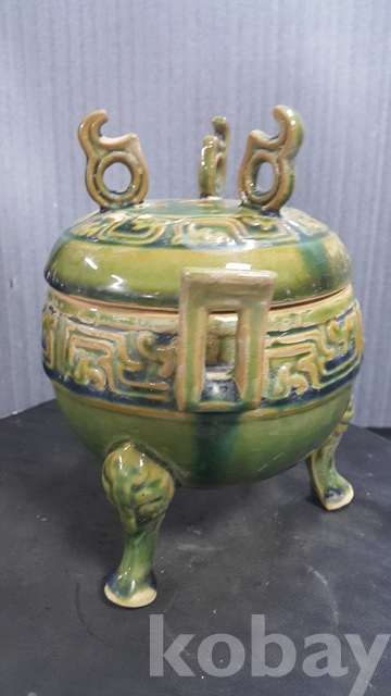 b-182.오래된 송청자 삼발귀면달린 해태향로