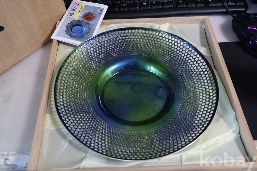 칠보 접시 임니다 특히 일본 칠보의 최고 기술을 보여 주는 명품 임니다 망사 처리 된 가느다란 칠보 된 그름망의 칠보 가 대단 한 명품 임니다 사진 참조 하세요