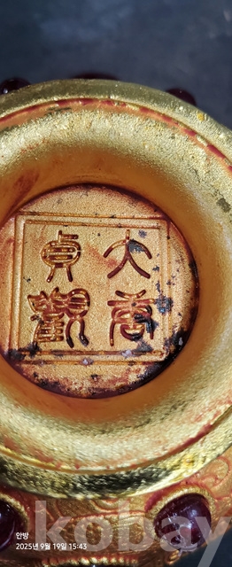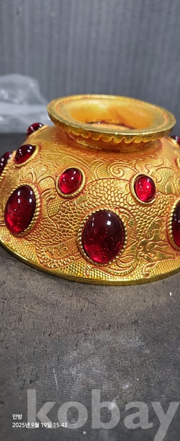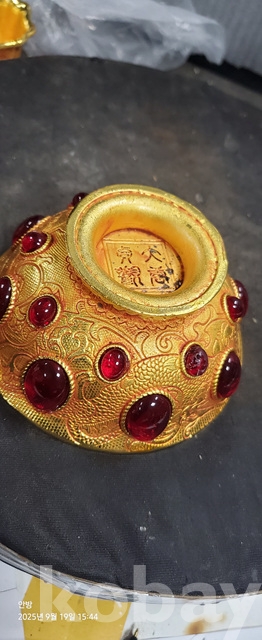 w-96.무게감있는 금도금 보석박힌찻사발
