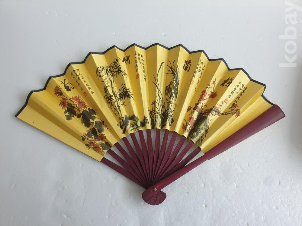 [천원경매] 4-185 비단소재 동양화 그려진 접이식 부채(사용감 거의 없음, 26cm)