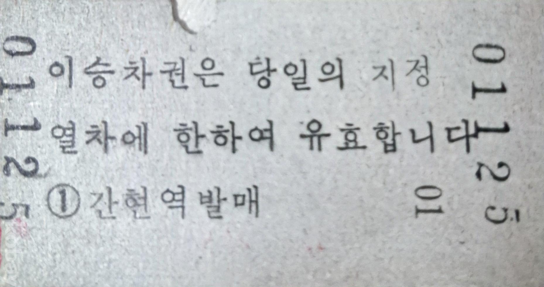 통일호 승차권 간현-망우 특정구간 일반입니다.(사용제)