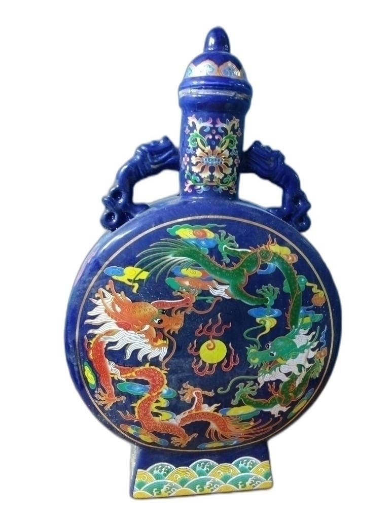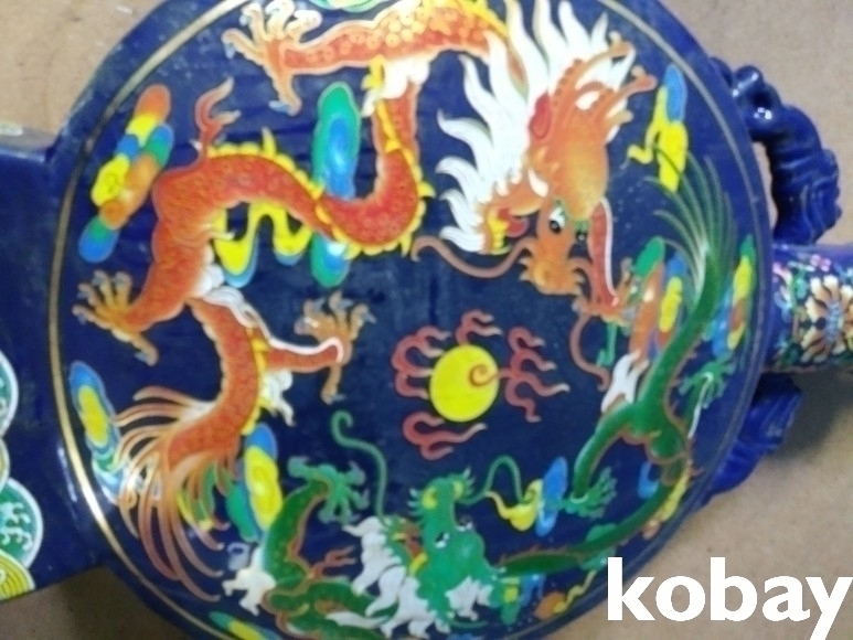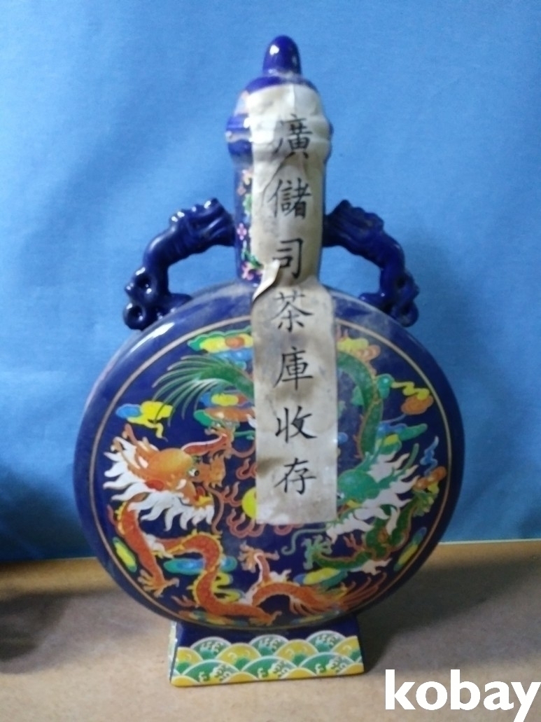 용 문양의 편병 보이차 도자기 입니다.