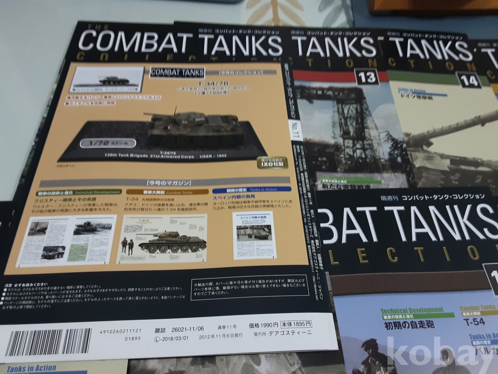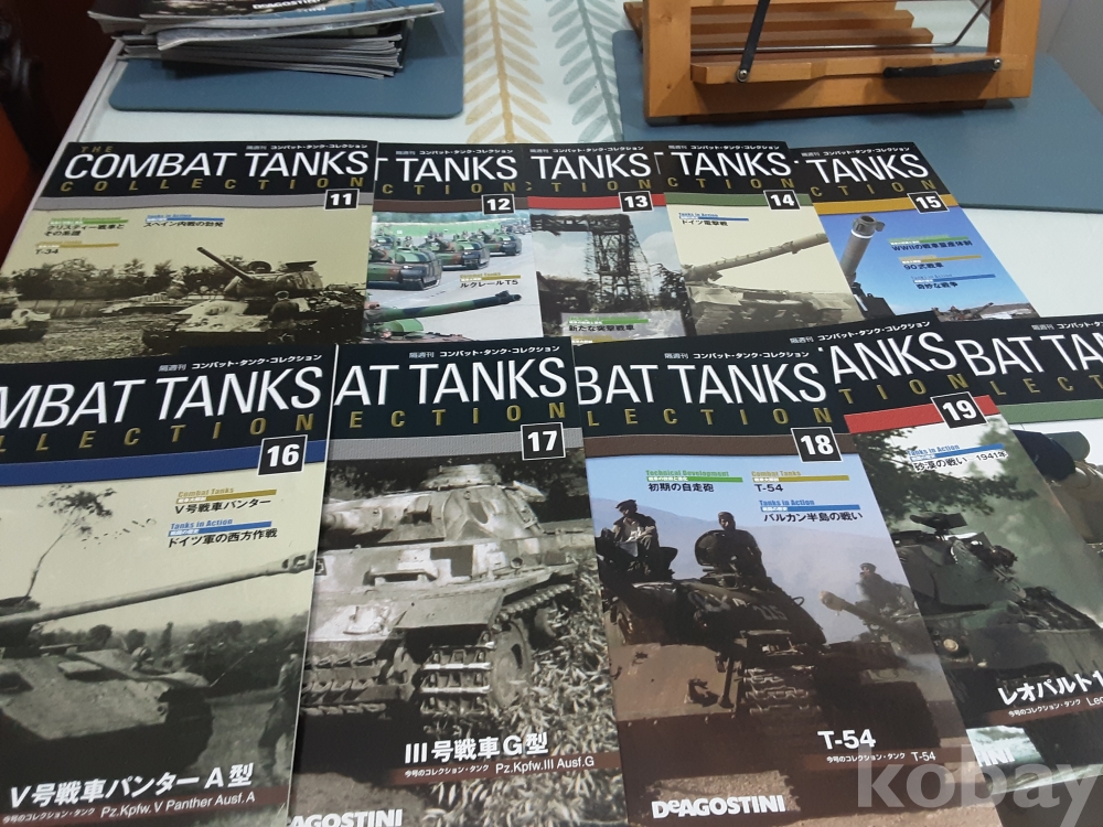 1. 데오고스티니(DeAGOSTINI) 전투 탱크 컬렉션은 다양한 국가의 제2차 세계 대전 및 냉전 시대를 대표하는 탱크들을 정교하게 재현한 1:72 스케일의 모형 120종 시리즈로 각 모델에는 디스플레이 케이스, 탱크모형과 잡지가 함께 제공된다. 전세계적으로 수집가들에게 인기가 많은 데오고스티니(DeAGOSTINI) 탱크 모델 해설서인 잡지 전 120종 판매.