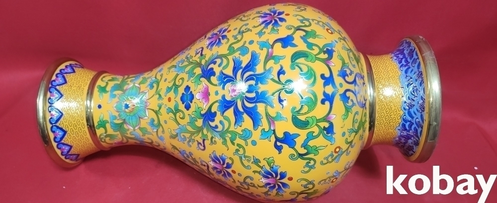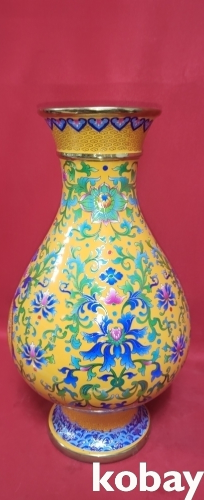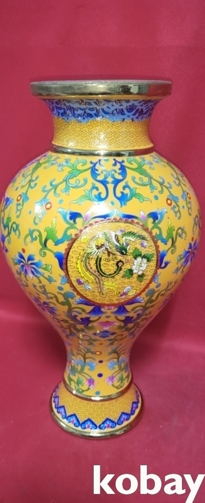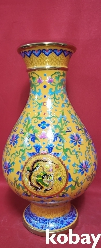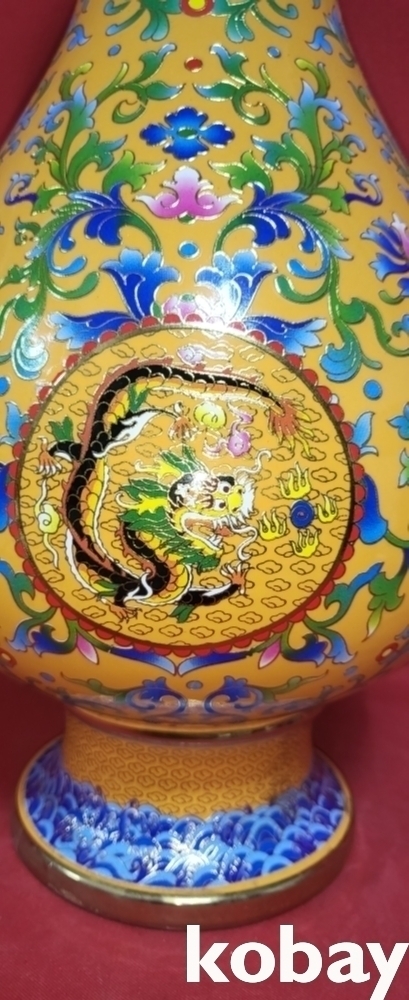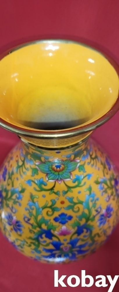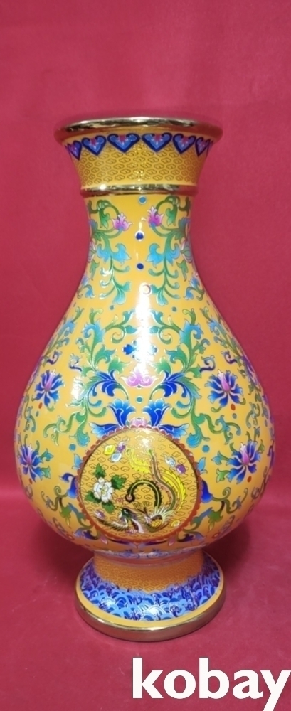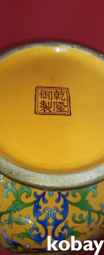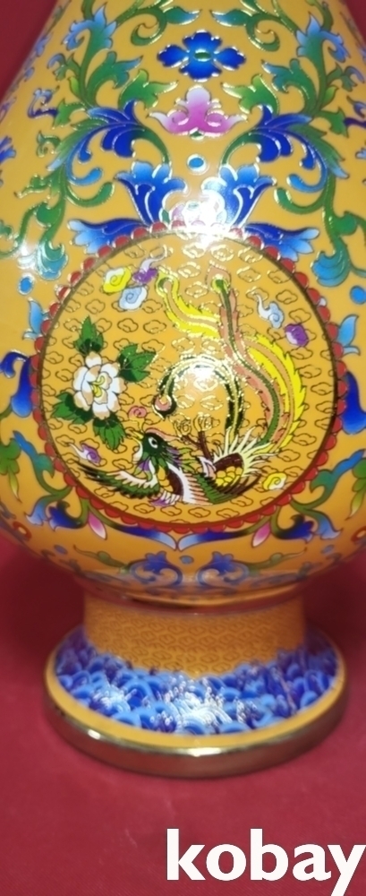 건륭어제 관지 보이는 황지 바닥에 범랑채 화훼와 개광 용봉문양 광구병입니다,