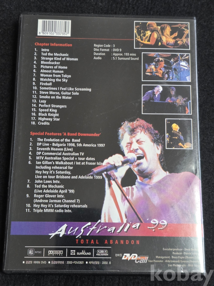 (((DVD)  DEEP PURPLE (딥 퍼플) '99 Australia DVD (2002)