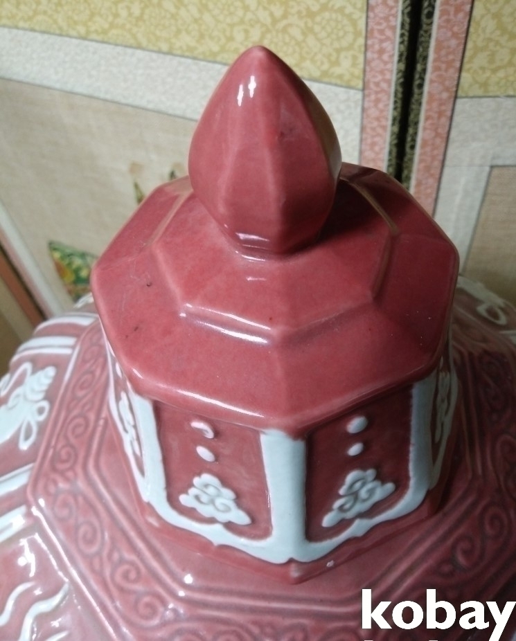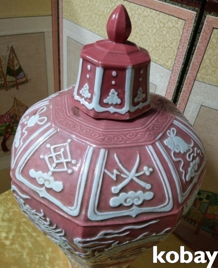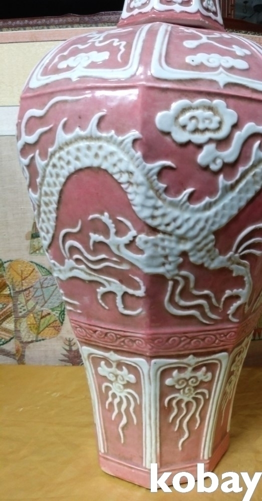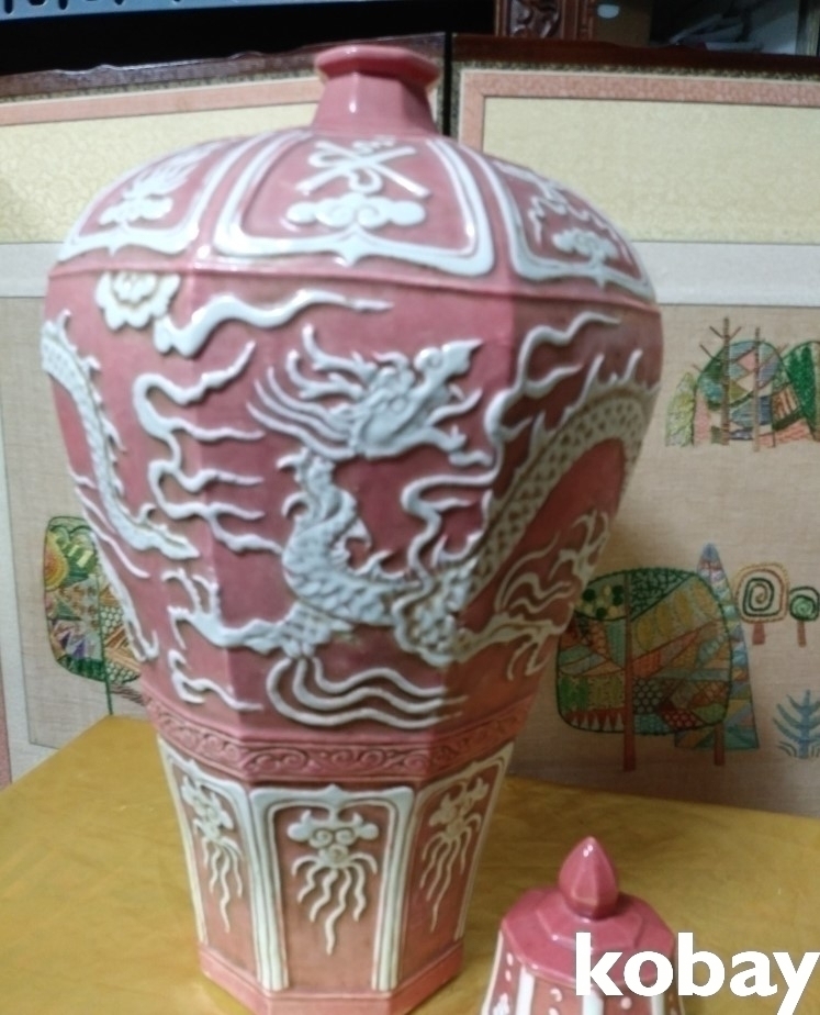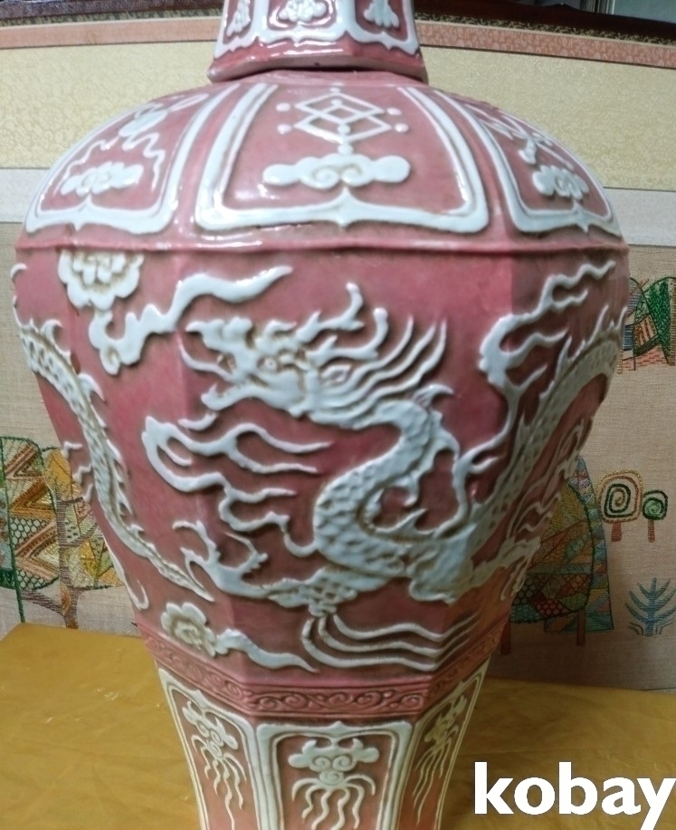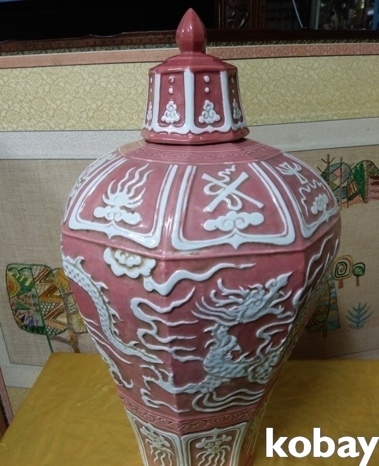 용이 돌출로 있는 8각 도자기 입니다.