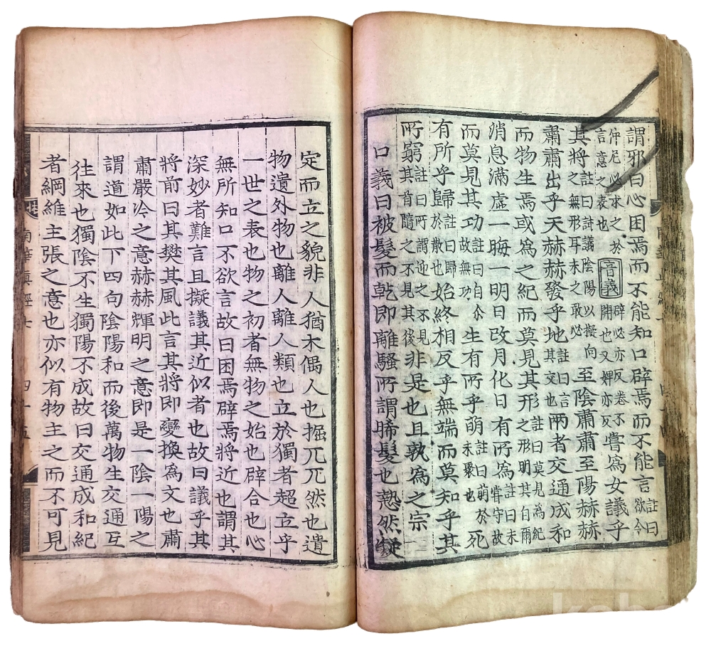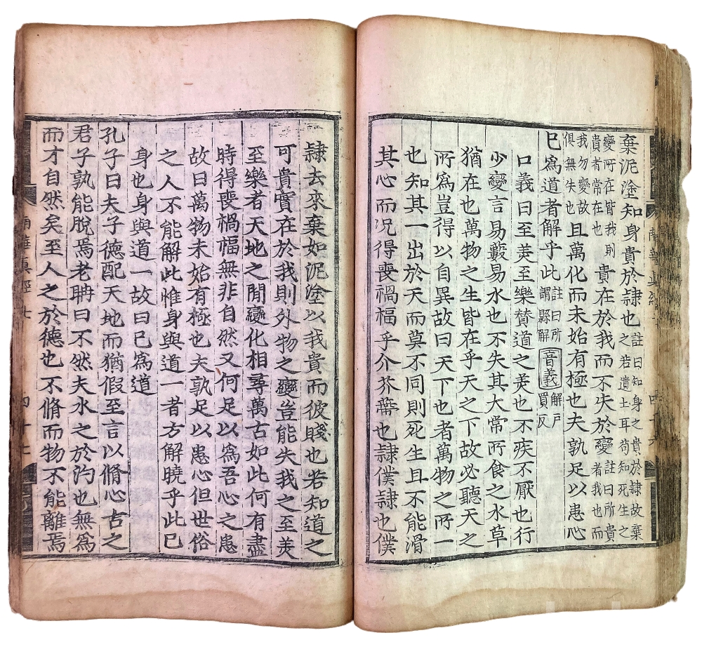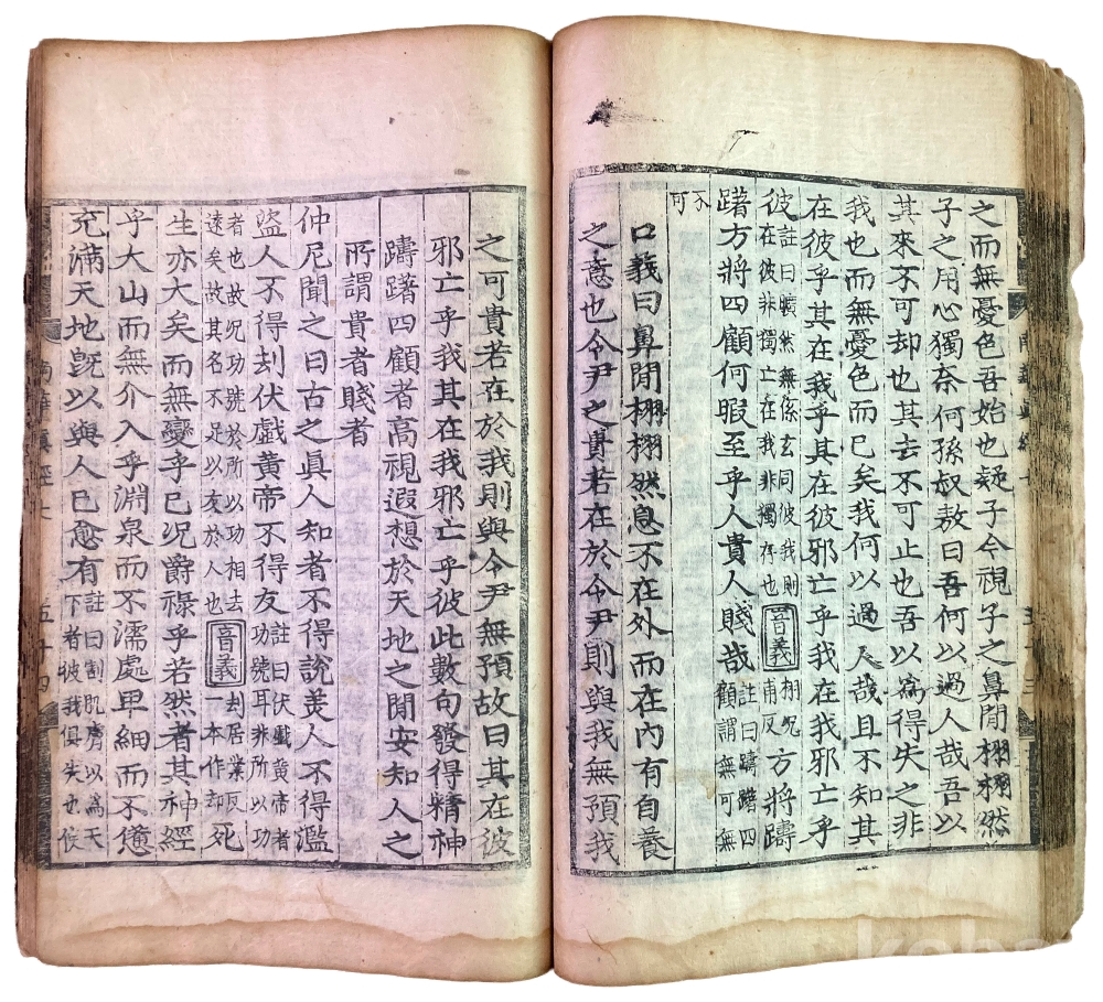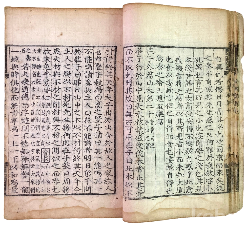 『남화진경』은 전국시대의 인물 장주(莊周)의 저서인 『장자(莊子)』를 높여서 부르는 말로, 전체 10권이며, 위 책은 권7에 해당합니다. 흔히 볼 수 있는 『구해남화진경』과는 다른 책이며, 을해자본뿐만 아니라 을해자 번각본 모두 임진왜란 이전에 간행되었으며, 매우 희귀한 책입니다. 권7에는 달생(達生), 산목(算木), 전자방(田子方), 지북유(知北遊) 등 4편이 수록되어 있습니다.