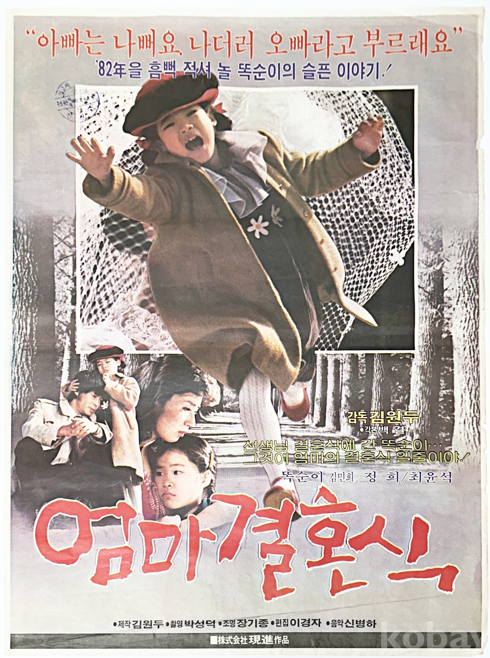 상품 설명 | 1980년대 아역배우로 많은 인기를 누렸던 배우 김민희가 주연 '똑순이' 역을 맡은 영화 '엄마 결혼식' 개봉 당시 포스터이다. | ||
