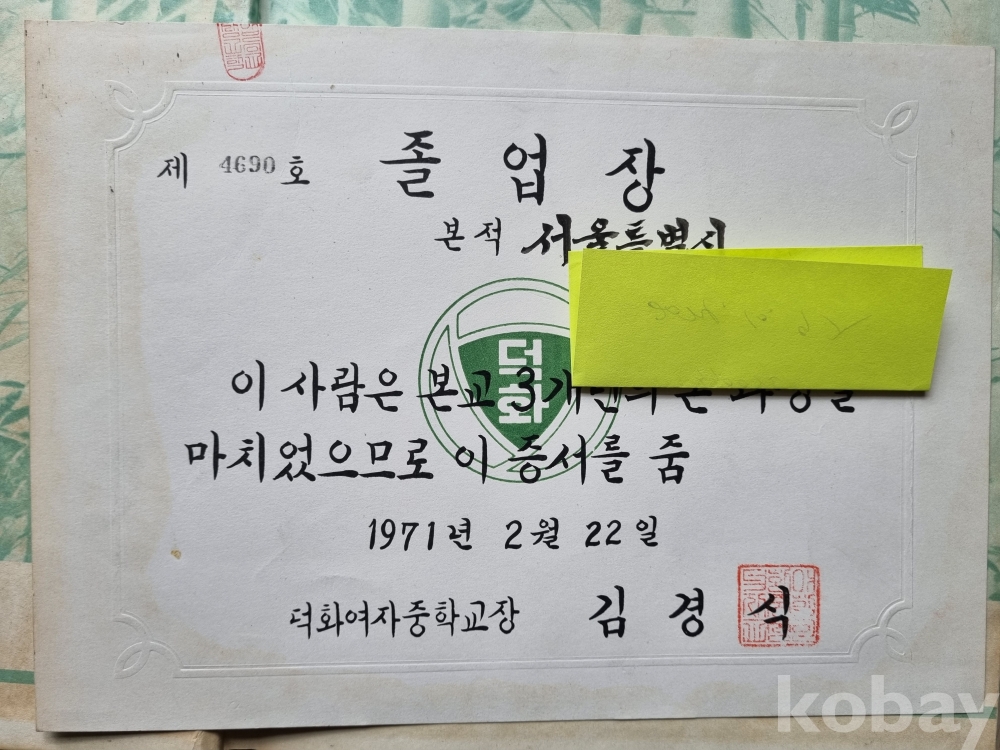 원소유자분의 졸업장 1매도 같이 있습니다.