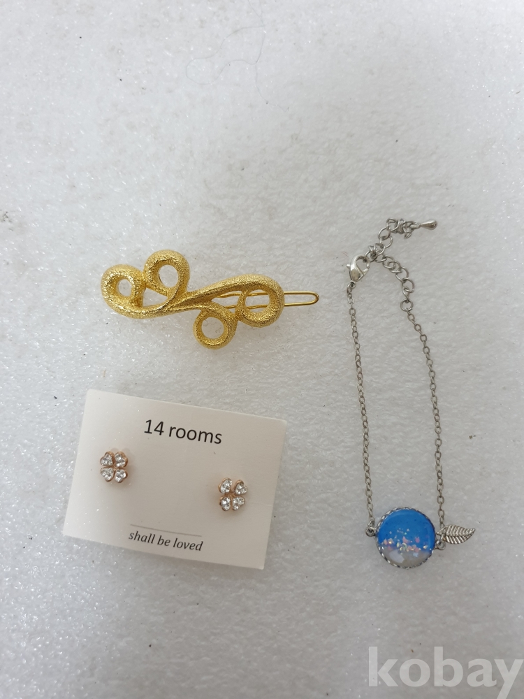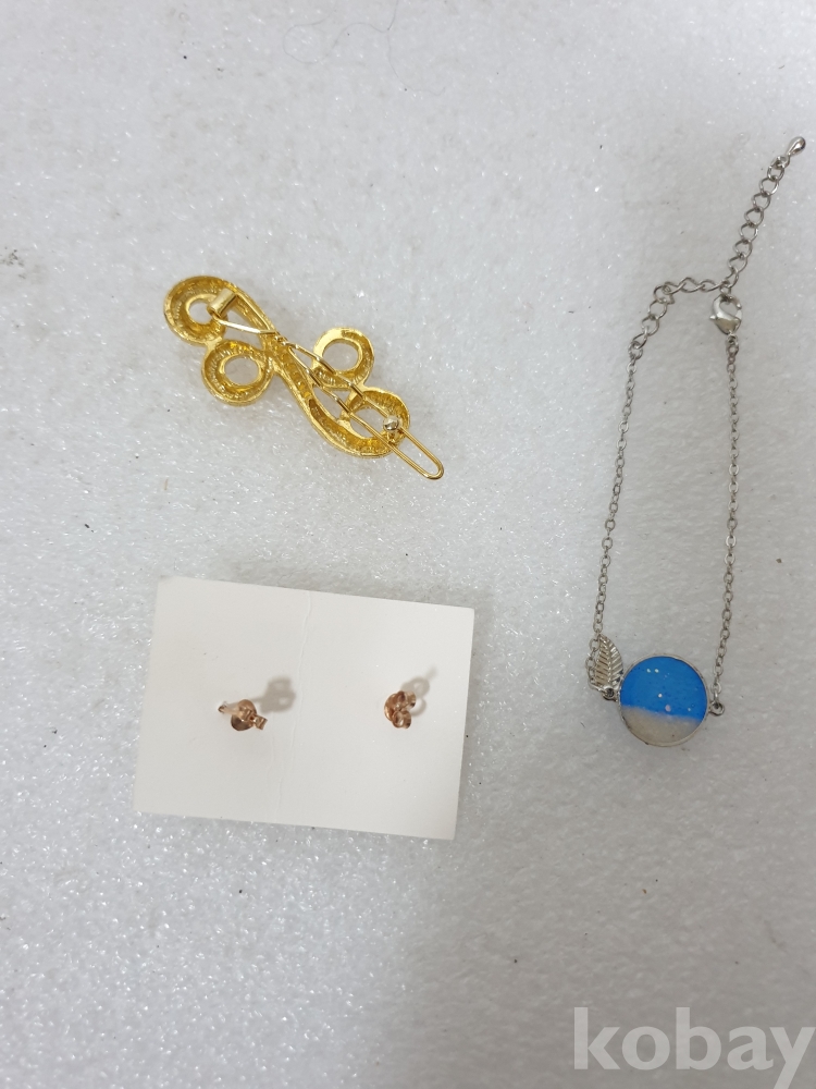 {천원경매} 4-1670 큐빅귀걸이 1쌍+금색 핀+팔찌