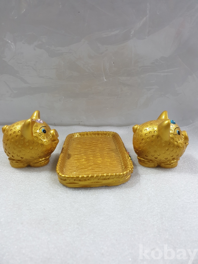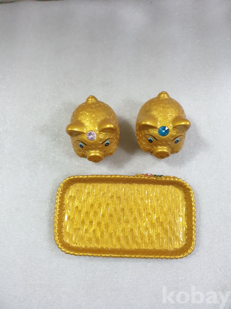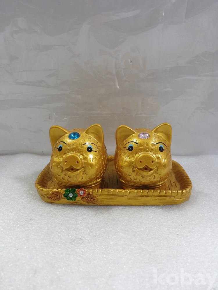 {천원경매}4-1424 골드 큐빅 돼지 한쌍