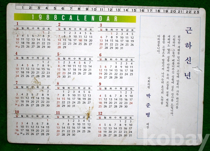 1988년 노태우 전대통령의 모습과 달력이 담긴 책받침