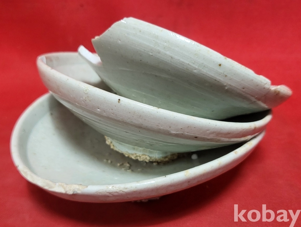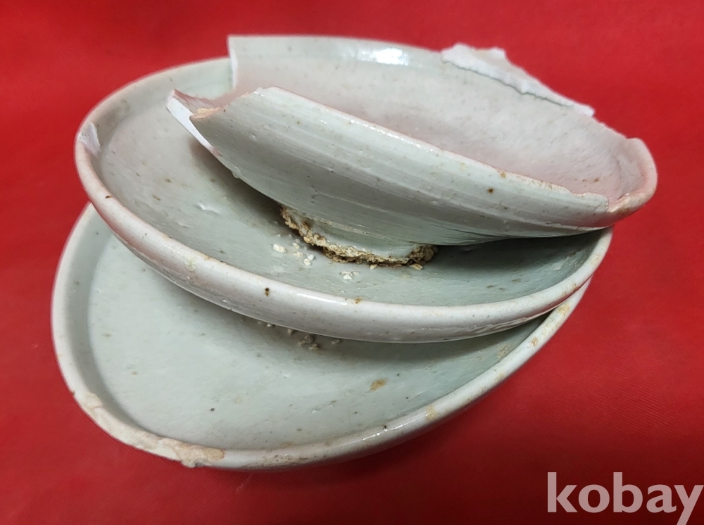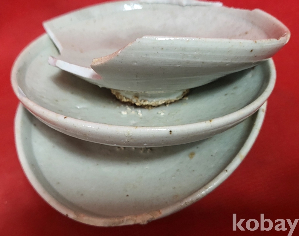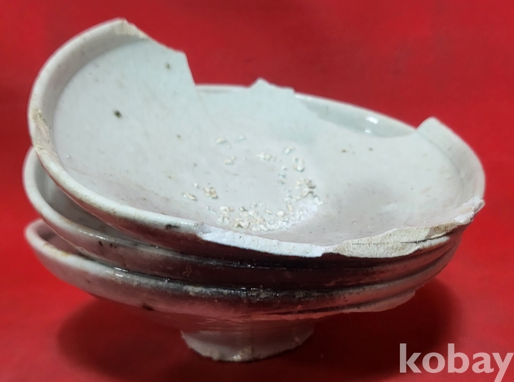 조선시대 백자 접시 3개가 가마에서 달라붙은 특별한 기물입니다,