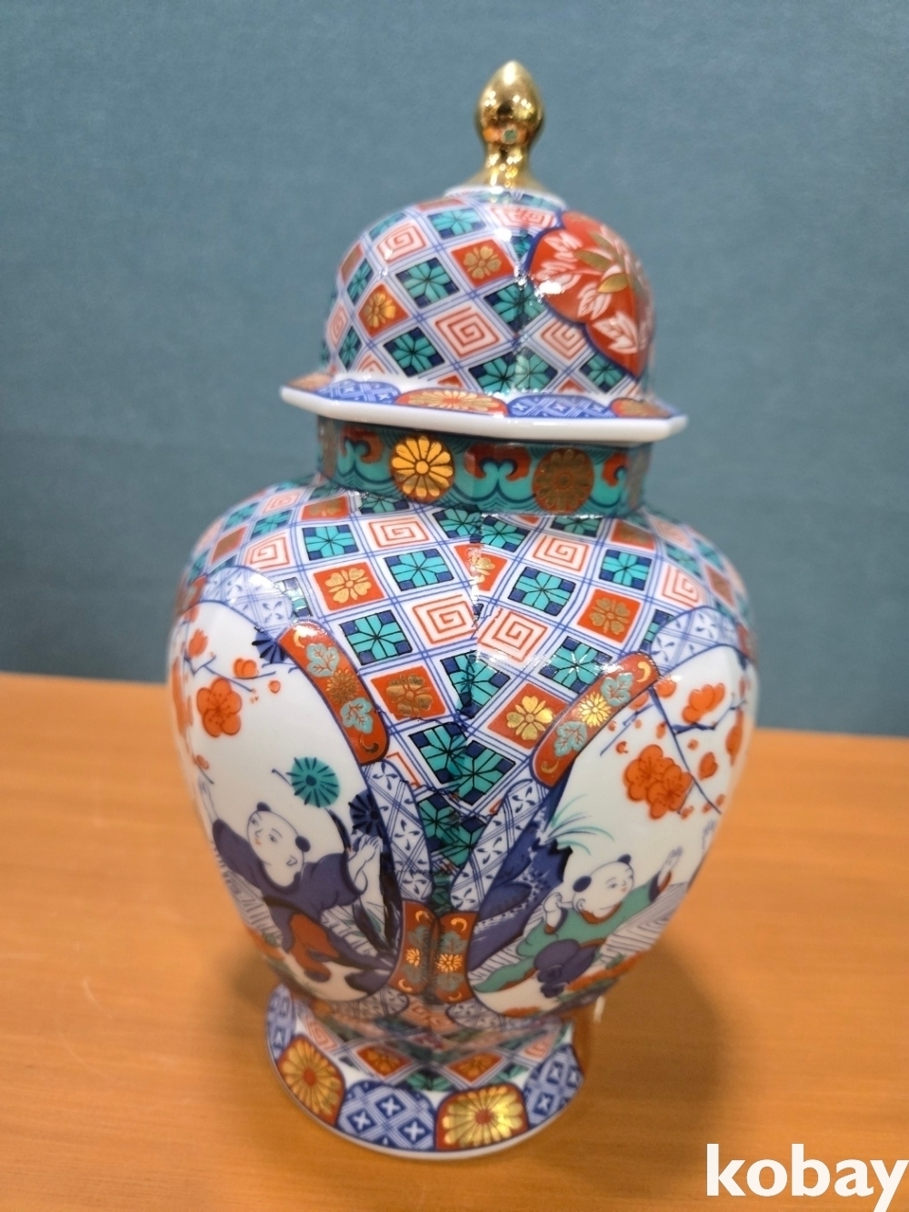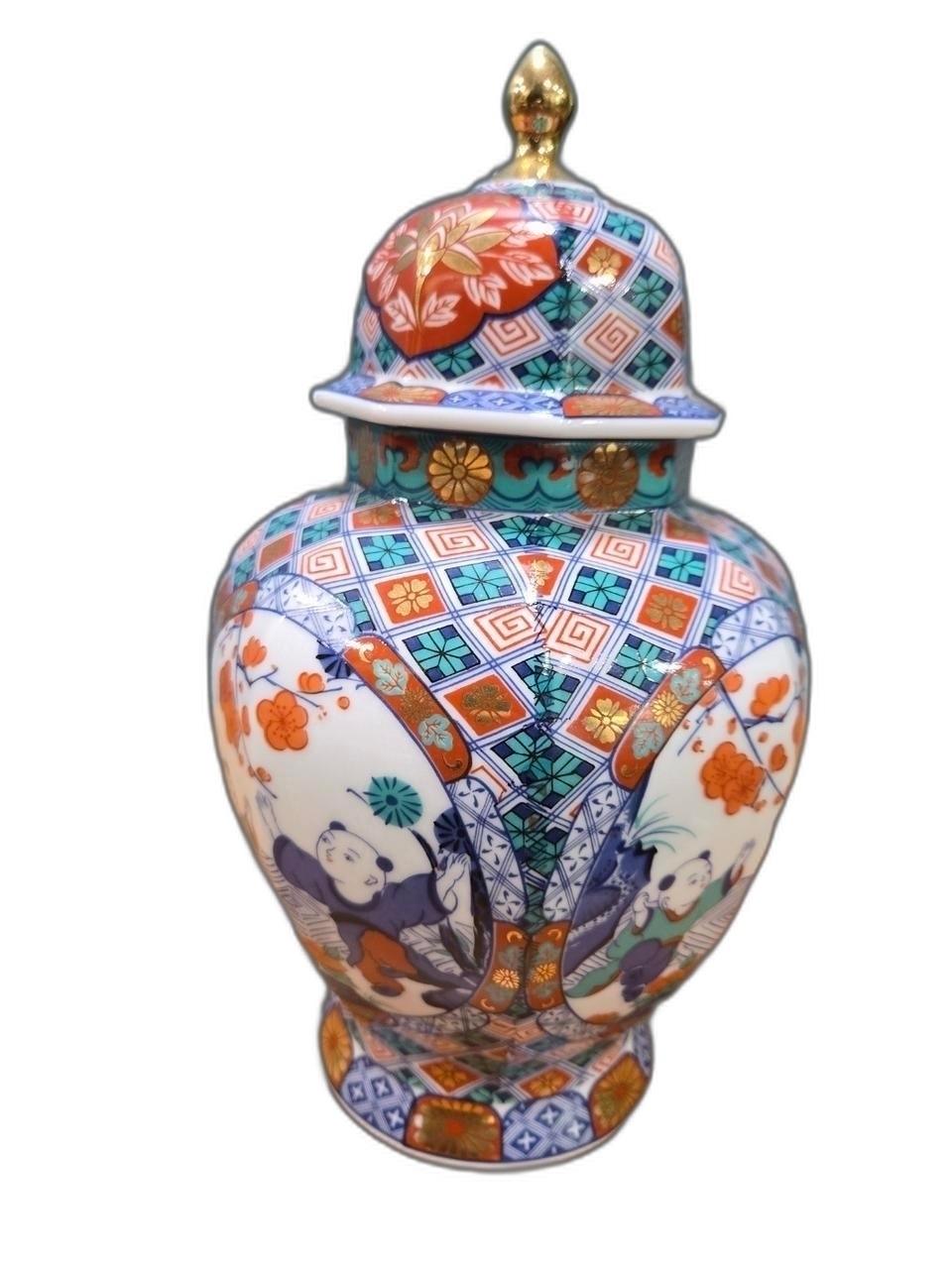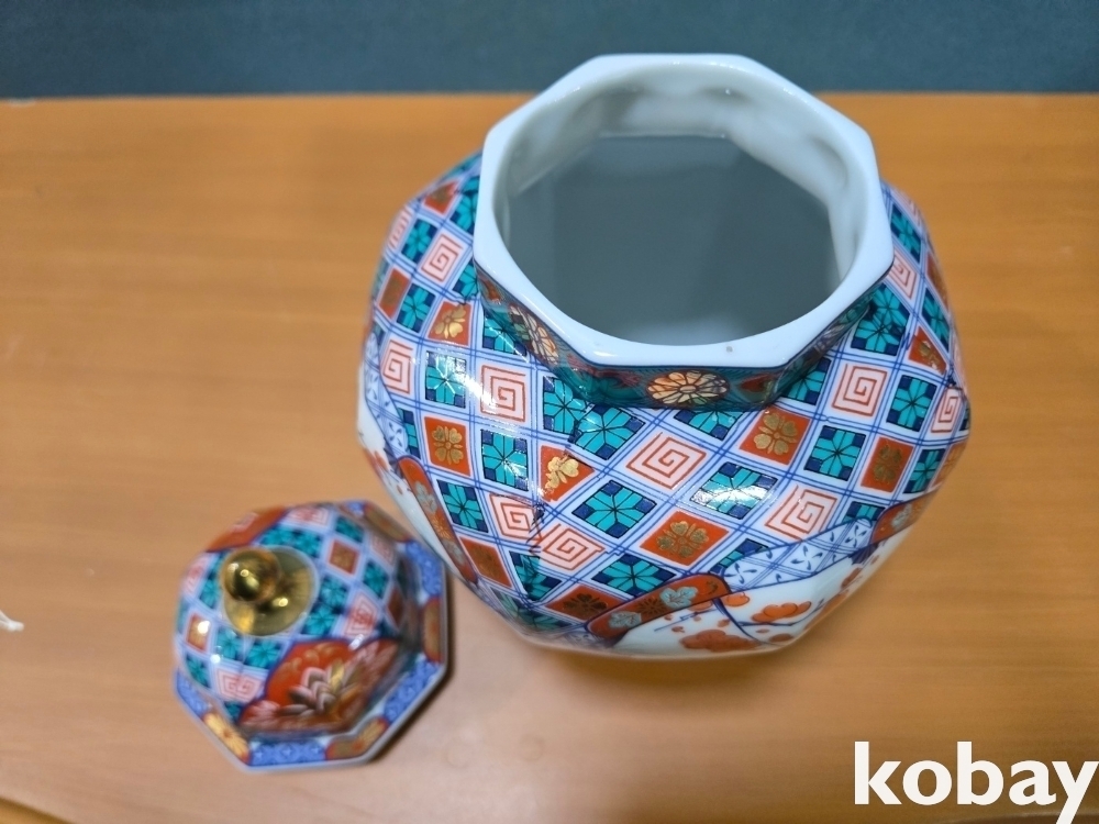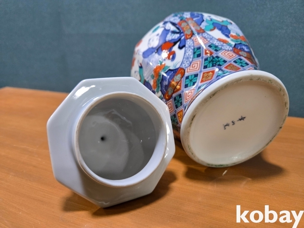 화려한 문양에 인뭎 표현 8각 도자기 입니다.