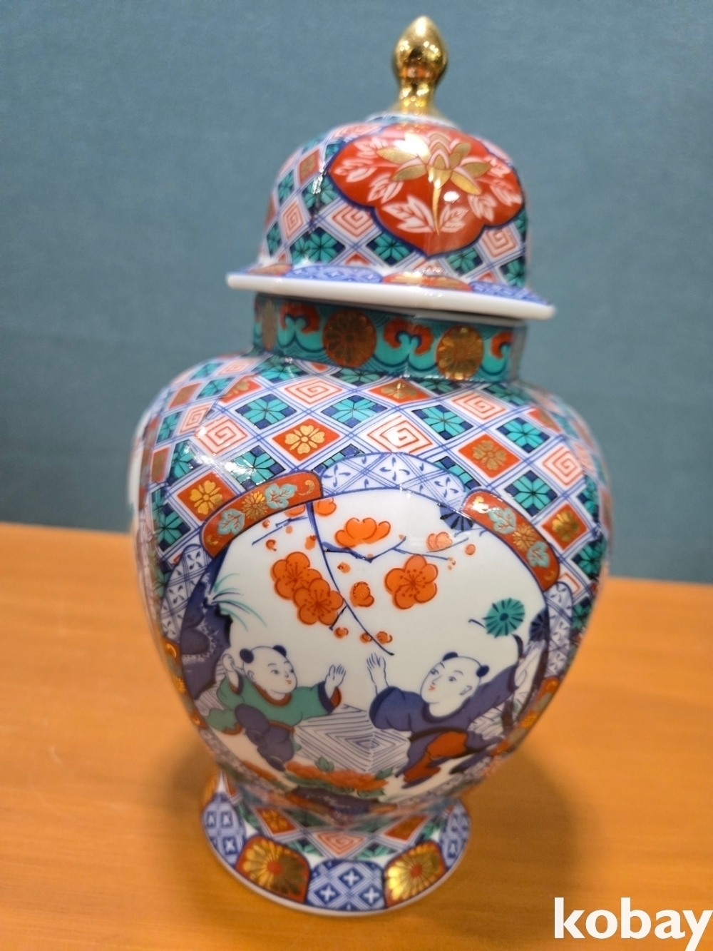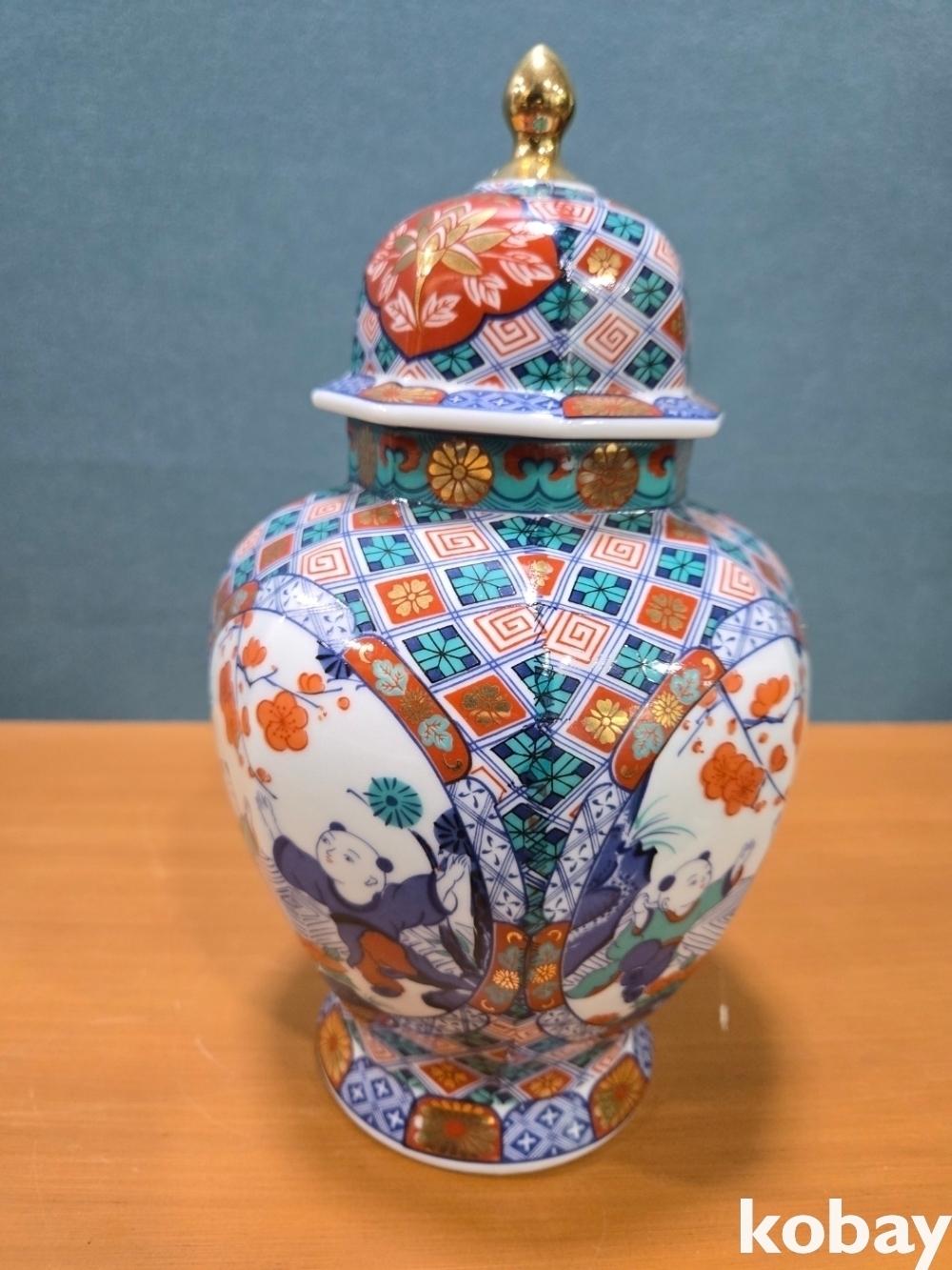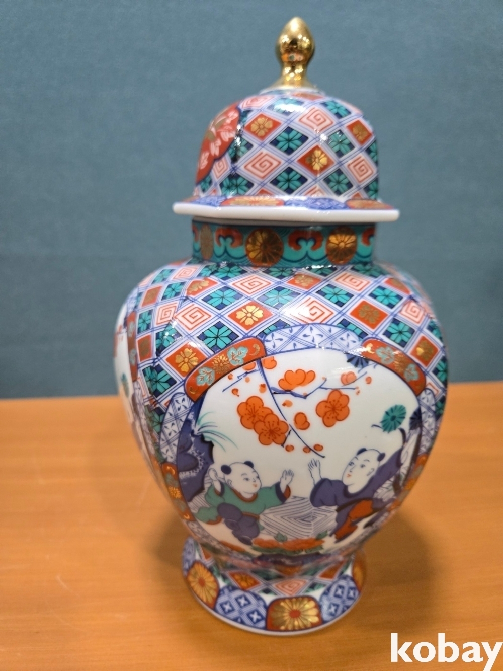 화려한 문양에 인뭎 표현 8각 도자기 입니다.