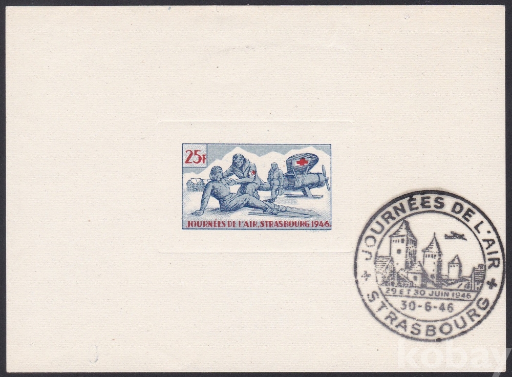 (하늘천) 프랑스 스트라스부르 1946년 비네트, 적십자, 항공기, 다이 프루프
