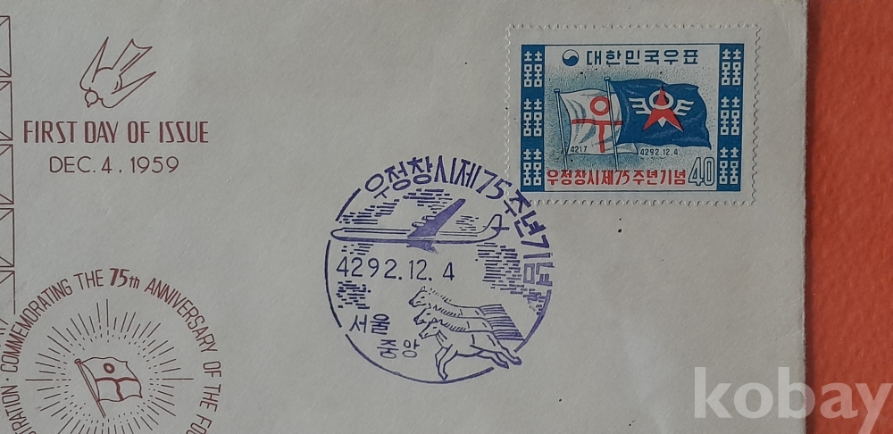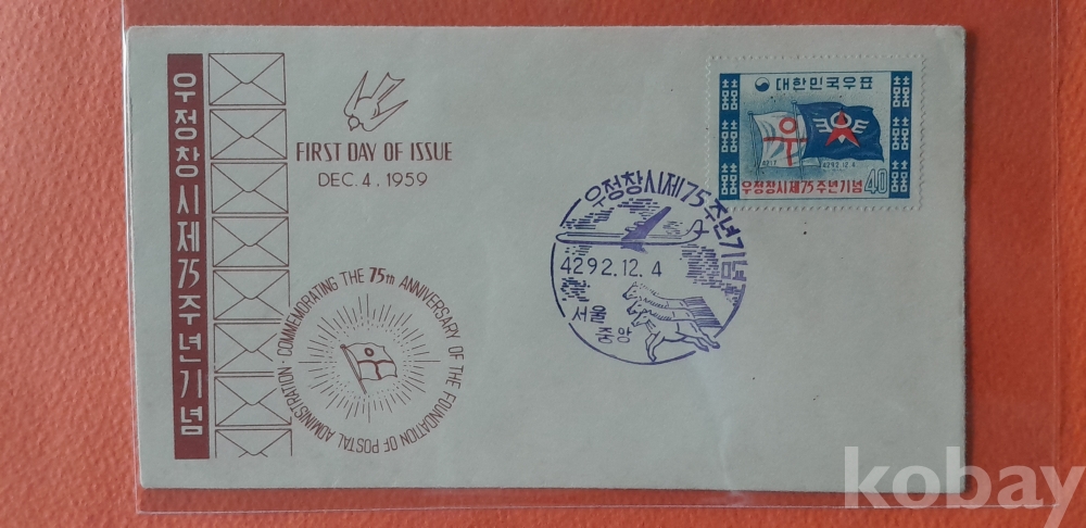 1959년 발행 우정창시 75주년 기념 초일봉피 입니다.