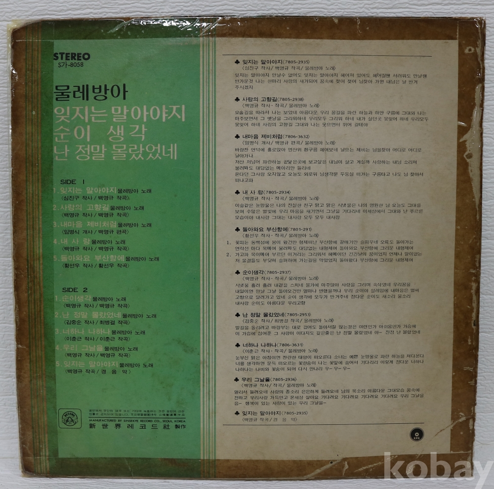 | 자켓상태 | G : 눈에 띄는 손상, 테이프, 필기 존재 | 음반상태 | VG : 생활 기스 다수, 가벼운 노이즈 존재 | 발매정보 | 초반 | 가사지여부 | 유 |