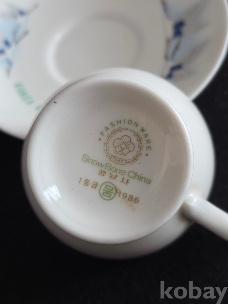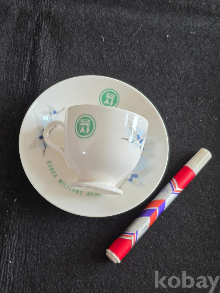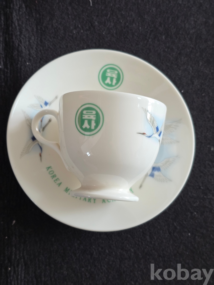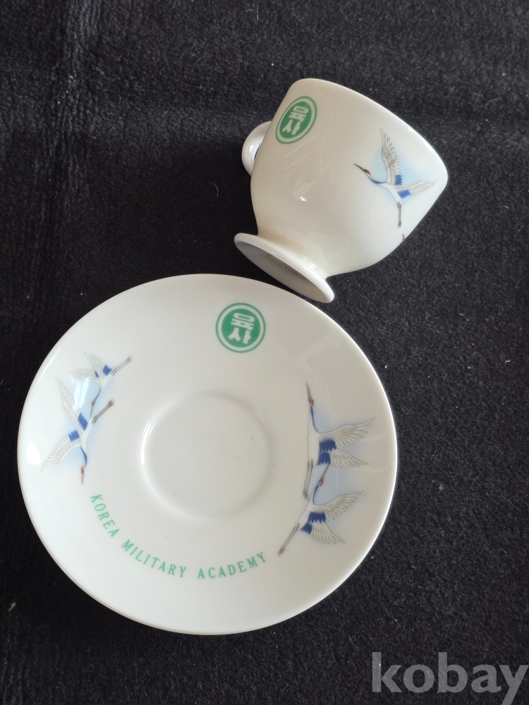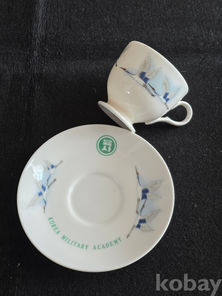 (((빈티지커피잔/도자기커피잔))) 오래전 鶴그림이 이쁜 육군사관학교 도자기커피잔 & 잔받침 (행남사)