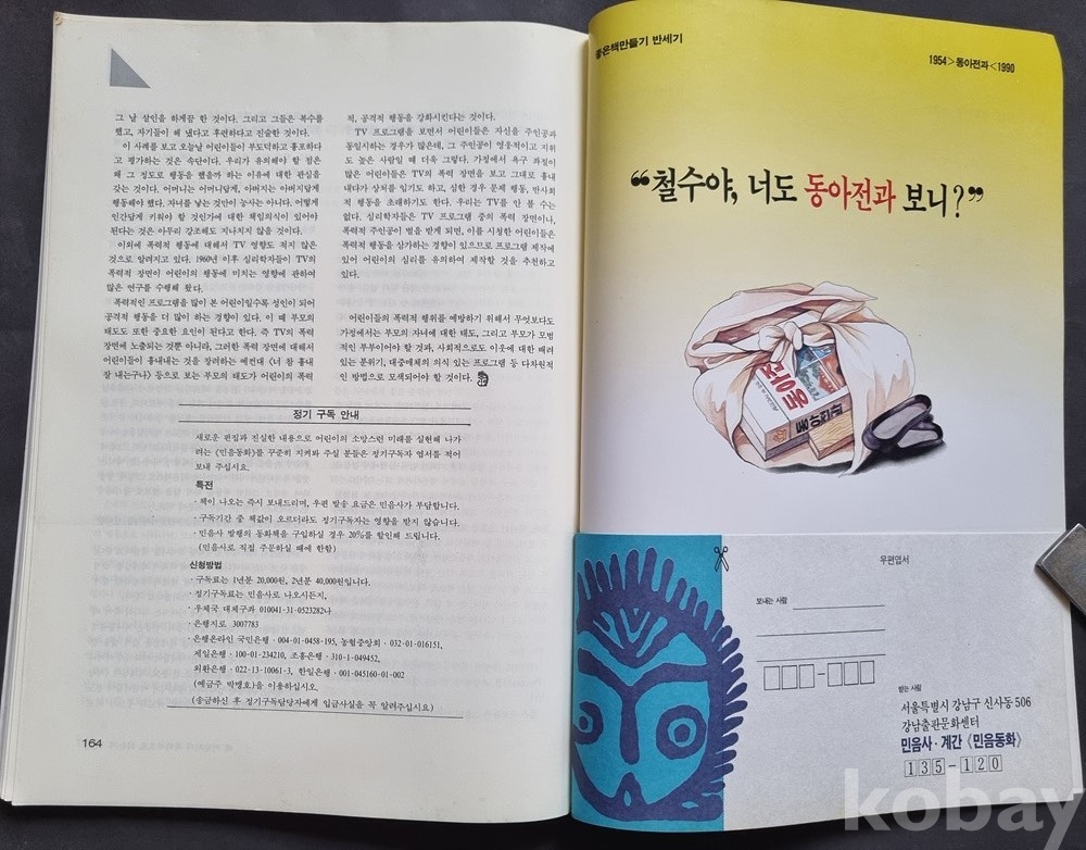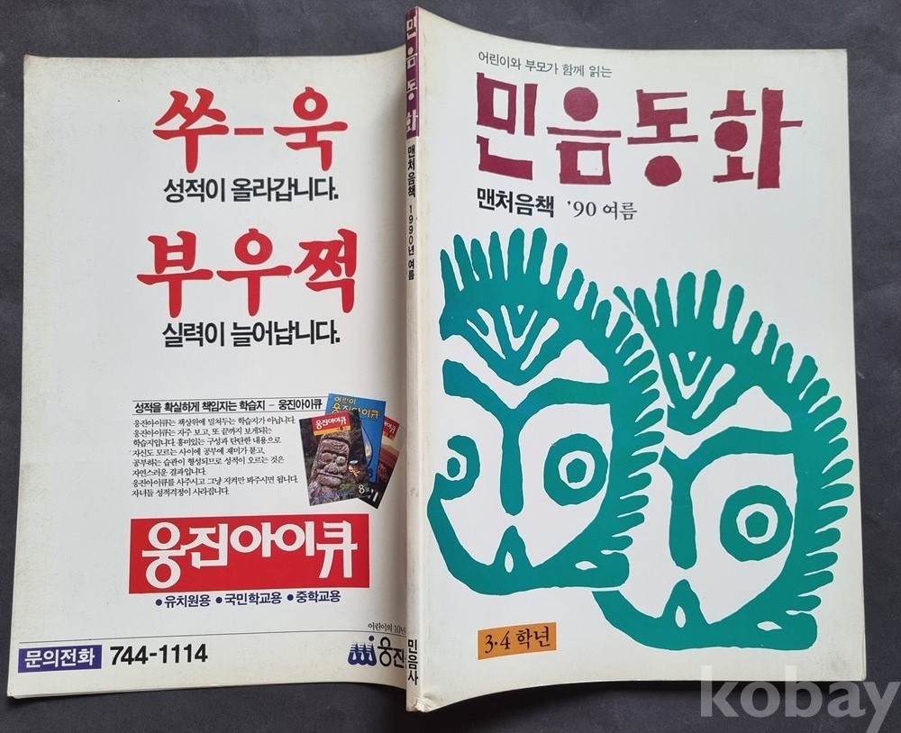 당시 웅진아이큐 학습지 광고, 동아전과 광고 등이 포함되어 있어 90년대 초반 교육 문화를 엿볼 수 있는 귀한 자료입니다.